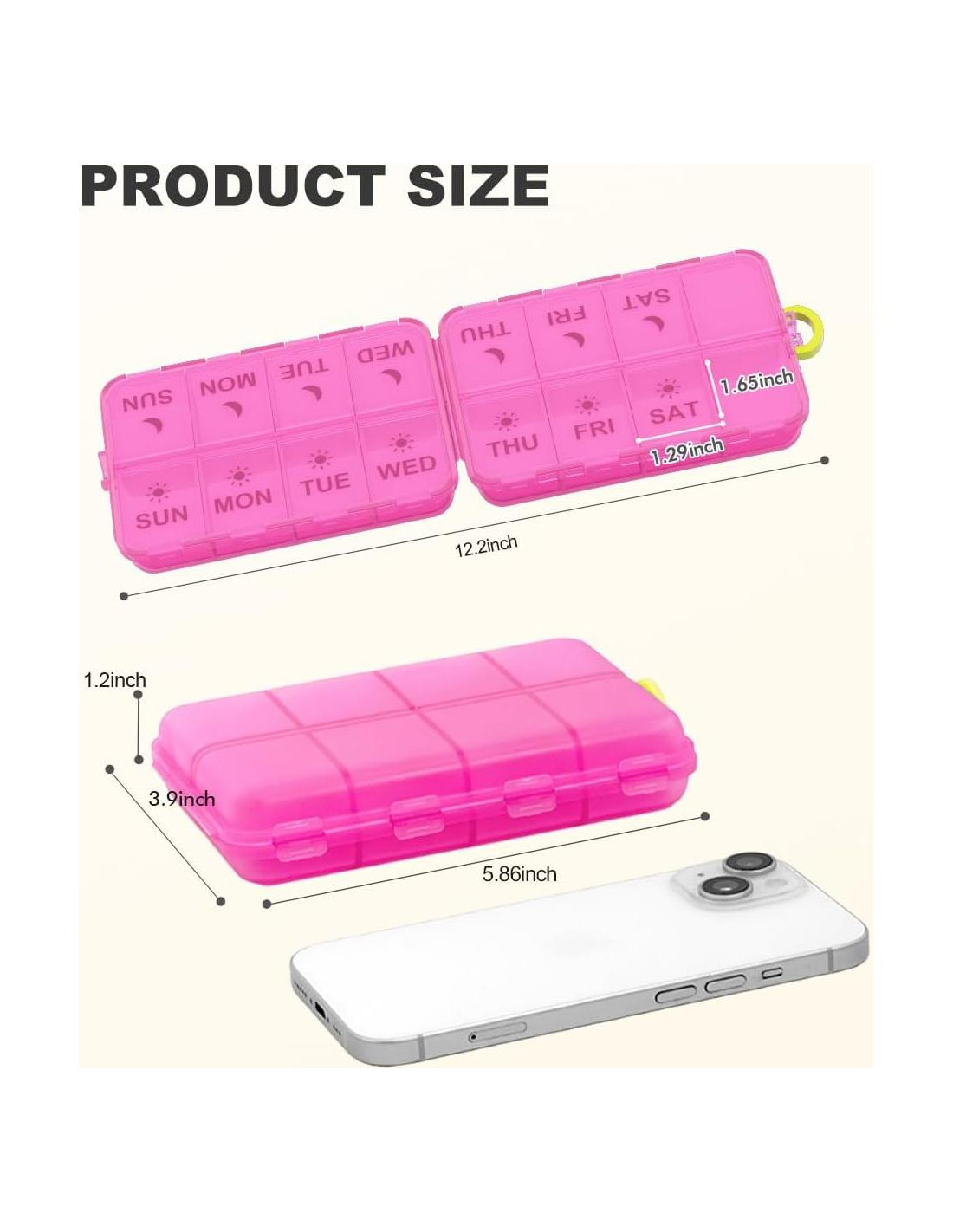 - ORGANIZADOR SEMANAL DE PASTILLAS: Tamaño 14.9 x 9.9 x 3.0 cm (5.86 x 3.9 x 1.2 pulgadas), con 16 compartimentos para la gestión de medicamentos dos veces al día, con dos compartimentos reservados, organización de dosis am pm para una semana en el trabajo diario en casa u oficina