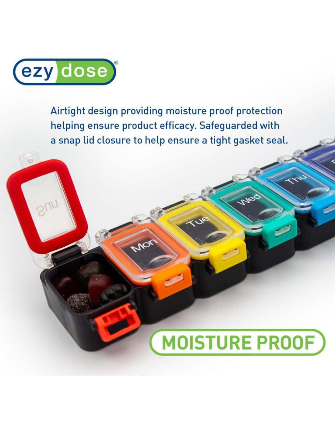 Presentamos la Caja de Pastillas a Prueba de Agua EZY DOSE de 7 Días - su solución confiable para la gestión segura y organizada de medicamentos. Diseñada con durabilidad y conveniencia en mente, esta caja de pastillas cuenta con un diseño a prueba de agua, asegurando que sus pastillas permanezcan secas e intactas en cualquier entorno. Con compartimentos claramente etiquetados para cada día de la semana, puede planificar y acceder fácilmente a su régimen de medicamentos. El sistema de bloqueo seguro proporciona tranquilidad durante los viajes, y su diseño compacto y portátil la convierte en un compañero perfecto para su rutina diaria. Confíe en la Caja de Pastillas a Prueba de Agua EZY DOSE de 7 Días para mantener sus medicamentos protegidos y accesibles, dondequiera que la vida lo lleve.