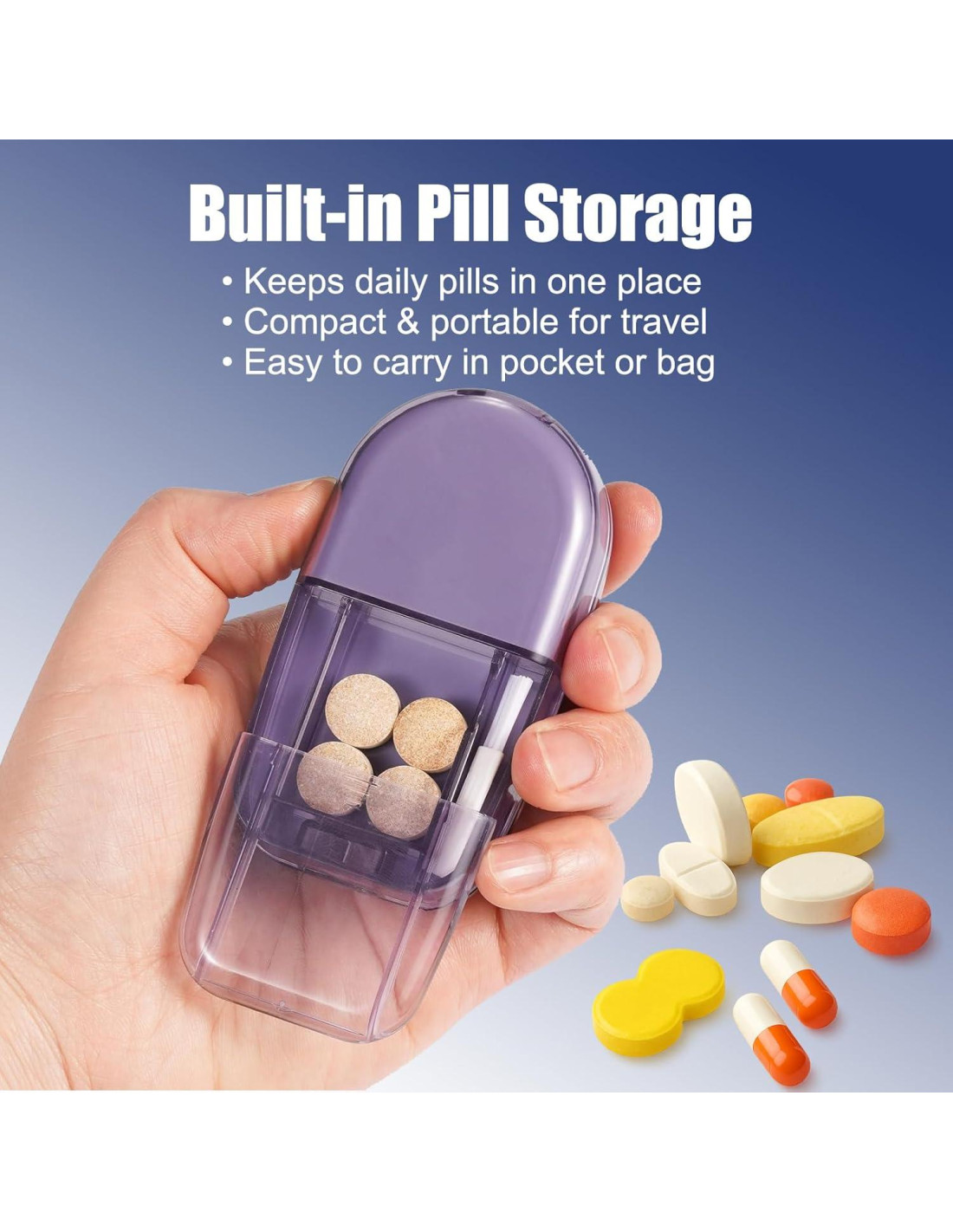 - [Organizador de Pastillas Incorporado y Cepillo de Limpieza] El compartimento deslizante para pastillas almacena dosis de forma segura. El cepillo de limpieza interno previene la pérdida de partes y lo mantiene limpio.