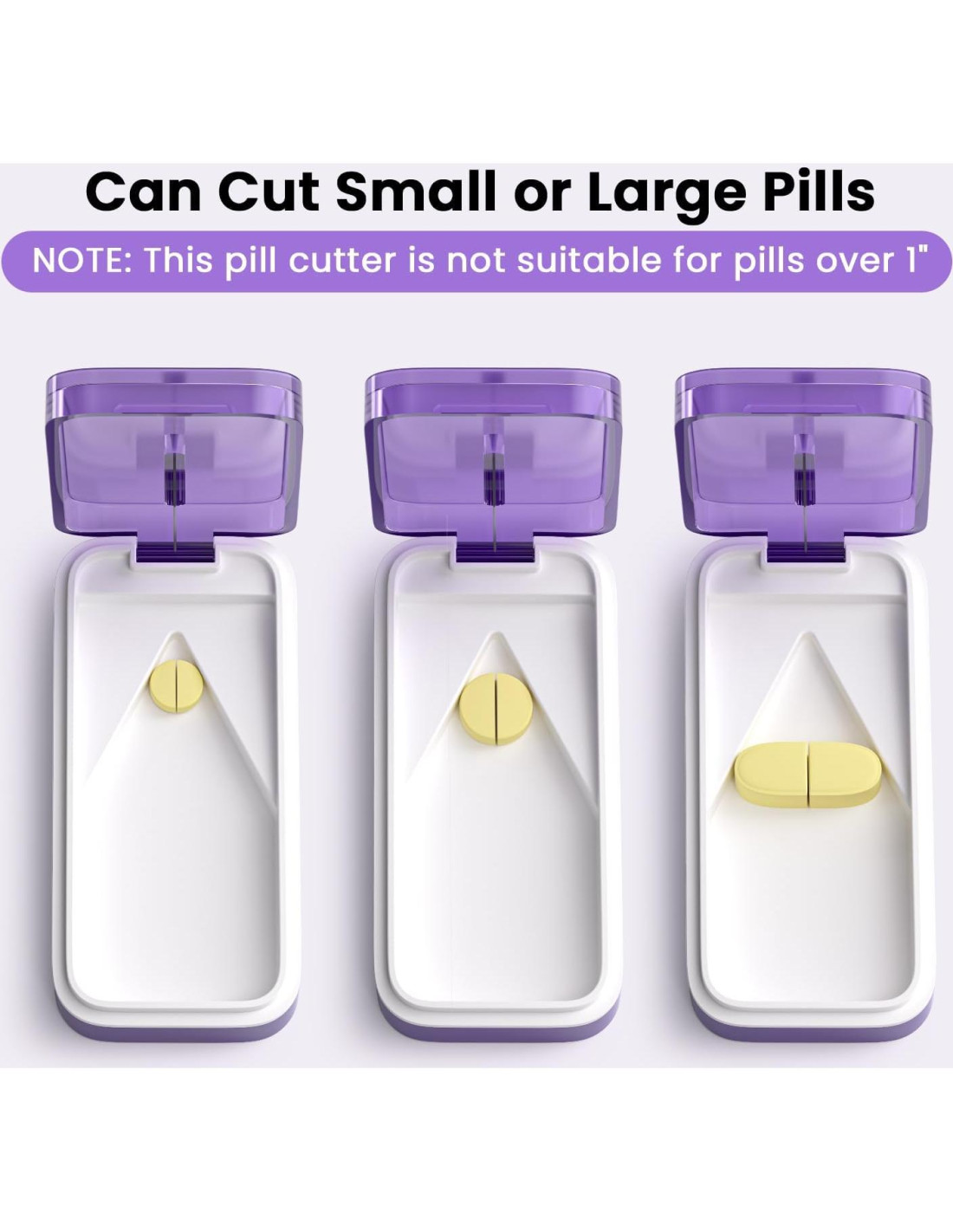 - CORTADOR DE PASTILLAS SIN BPA: Hecho de plástico de grado médico, silicona y acero inoxidable, seguro para uso médico