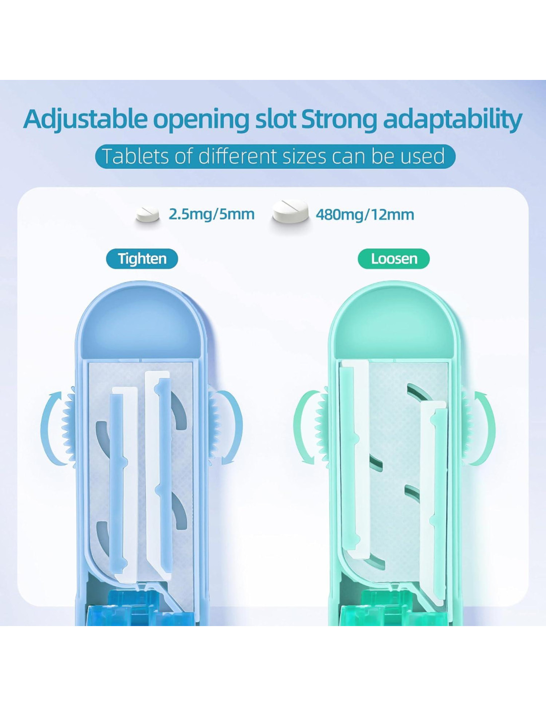 - Cortadores de Pastillas para Pastillas Pequeñas y Grandes Este cortador de pastillas múltiple tiene 2 barras ajustables para acomodar de manera segura pastillas redondas, rectangulares, ovaladas o la mayoría de las pastillas de otros tamaños. Este divisor de pastillas puede cortar tabletas de 2mm a 15mm de tamaño y ancho, por lo que puedes cortar fácilmente tabletas pequeñas de hasta 2.5mg