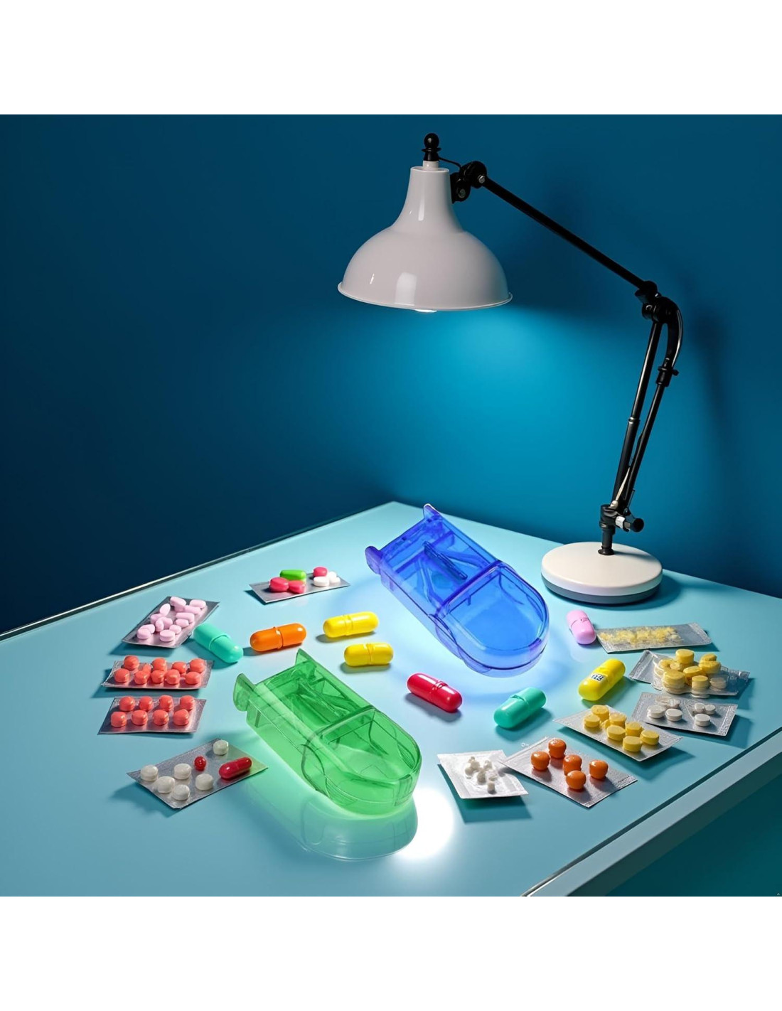 - PAQUETE DOBLE: El set incluye 2 cortadores de pastillas diseñados para pastillas tanto pequeñas como grandes, proporcionando versatilidad para diferentes tamaños de medicamentos