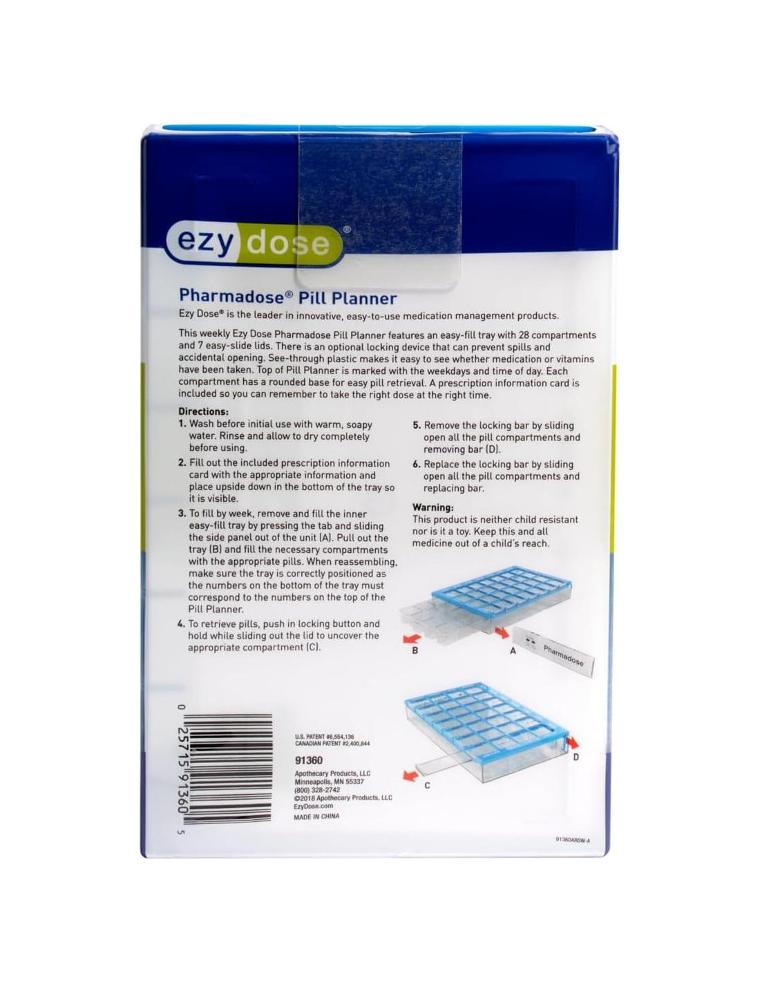 Simplifica tu rutina diaria de medicación con el Planificador de Pastillas Ezy Dose Pharmadose, una solución premium para gestionar tus medicamentos, vitaminas y suplementos con facilidad y precisión. Este organizador de pastillas, diseñado cuidadosamente, ofrece una forma clara y estructurada de programar y distribuir tus dosis a lo largo del día. Las bandejas extraíbles te permiten llenar convenientemente toda la medicación de un día de una sola vez, ahorrándote tiempo y esfuerzo. Su cuerpo de plástico transparente proporciona una excelente visibilidad, para que puedas verificar rápidamente tus dosis de un vistazo. La característica de barra de bloqueo asegura que tus medicamentos permanezcan seguros y sin derrames, mientras que los compartimentos de capacidad mediana son perfectos para almacenar pastillas o múltiples dosis. Con múltiples compartimentos diseñados para organizar las dosis a lo largo del día, este planificador apoya incluso las rutinas de salud más detalladas. Ezy Dose es un líder de confianza en soluciones de gestión de medicamentos, ofreciendo productos innovadores y fáciles de usar que hacen que vivir de manera más saludable sea simple y sin estrés. Muchos de nuestros planificadores de pastillas con botón de presión están respaldados por la Fundación de Artritis por su diseño fácil de usar. Explora nuestra gama completa de productos, incluidos cortadores de pastillas, trituradores y planificadores de llenado fácil, para apoyar tu salud con una comodidad y fiabilidad inigualables. Haz que gestionar tu salud sea un paseo con el Planificador de Pastillas Ezy Dose Pharmadose, porque un estilo de vida más saludable comienza con una organización más inteligente.
