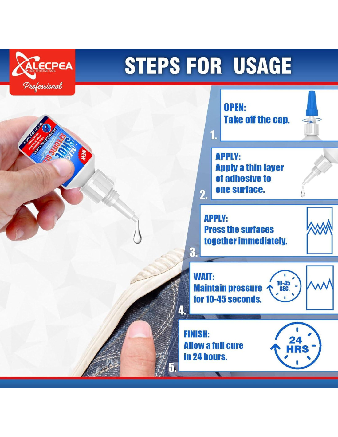 - VERSATILIDAD INIGUALABLE - El Pegamento para Zapatos ALECPEA no es solo un pegamento; es una solución de reparación versátil. Ya sean zapatillas, botas, sandalias o tacones, nuestra fórmula de pegamento para zapatos de alta resistencia está diseñada para manejarlo todo. Su versatilidad lo convierte en un elemento imprescindible para cualquier reparación de zapatos, desde la suela hasta la parte superior.