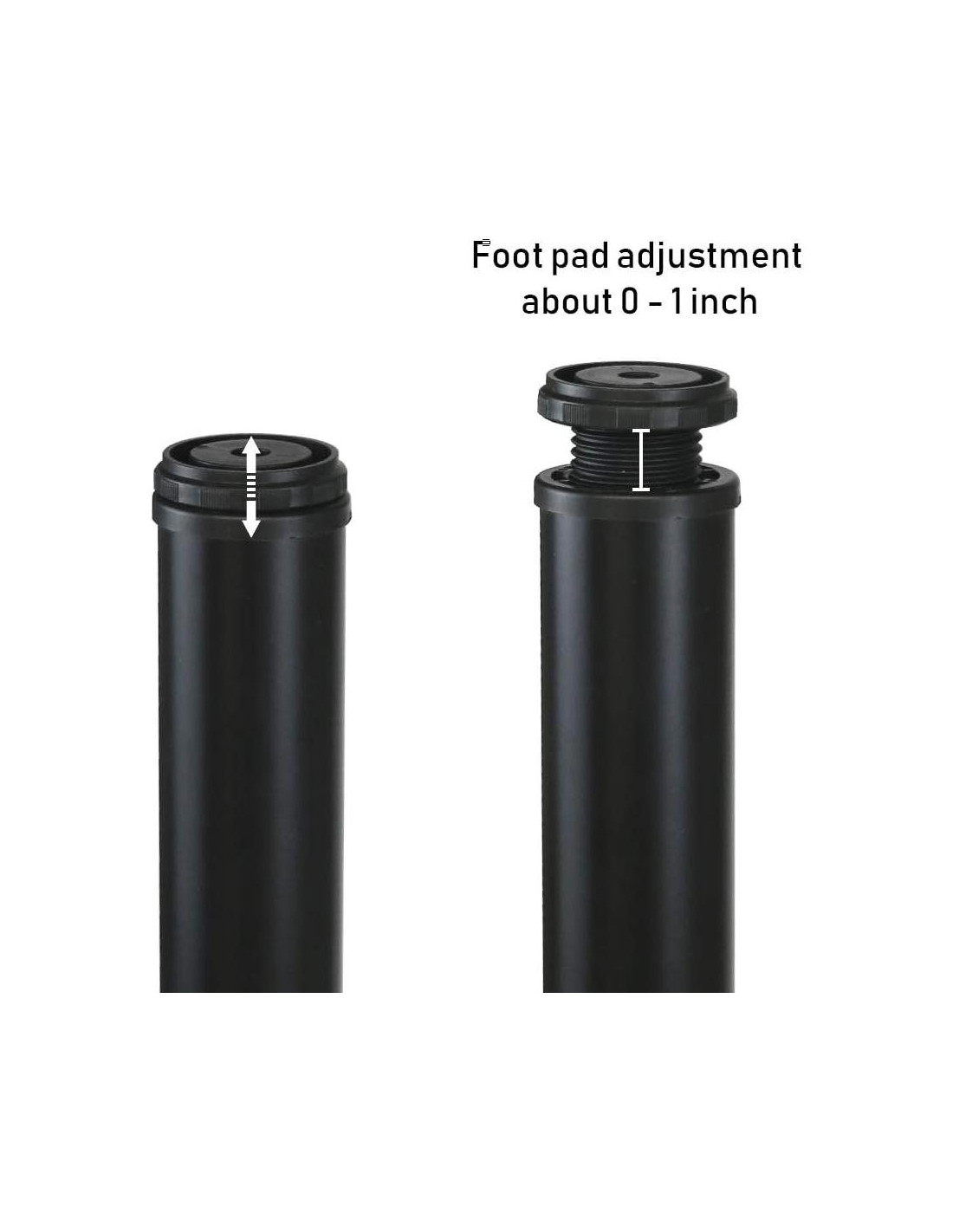 - Tamaño - Altura: 10.2 cm (con placa de montaje), el mecanismo de tornillo en la parte inferior puede ajustarse aproximadamente 2.5 cm, la placa de montaje tiene aproximadamente 1 cm de altura. Diámetro: 5 cm. Peso: 0.15 KG (Una Pierna).