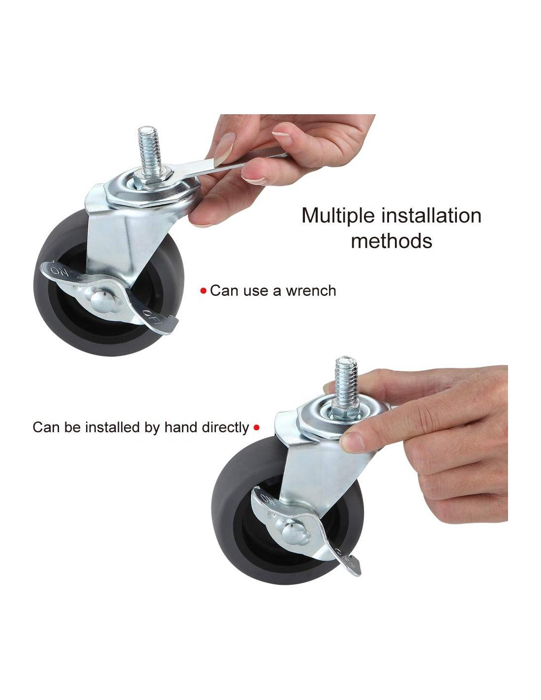 - Fácil de instalar: Ruedas giratorias de tornillo, ruedas de caster con freno, set con tuercas y llaves, la placa superior en forma de onda es un disco de onda octagonal, fácil de instalar. Ruedas Stem, Ruedas con Sin Ruido Set de 4 Ruedas.