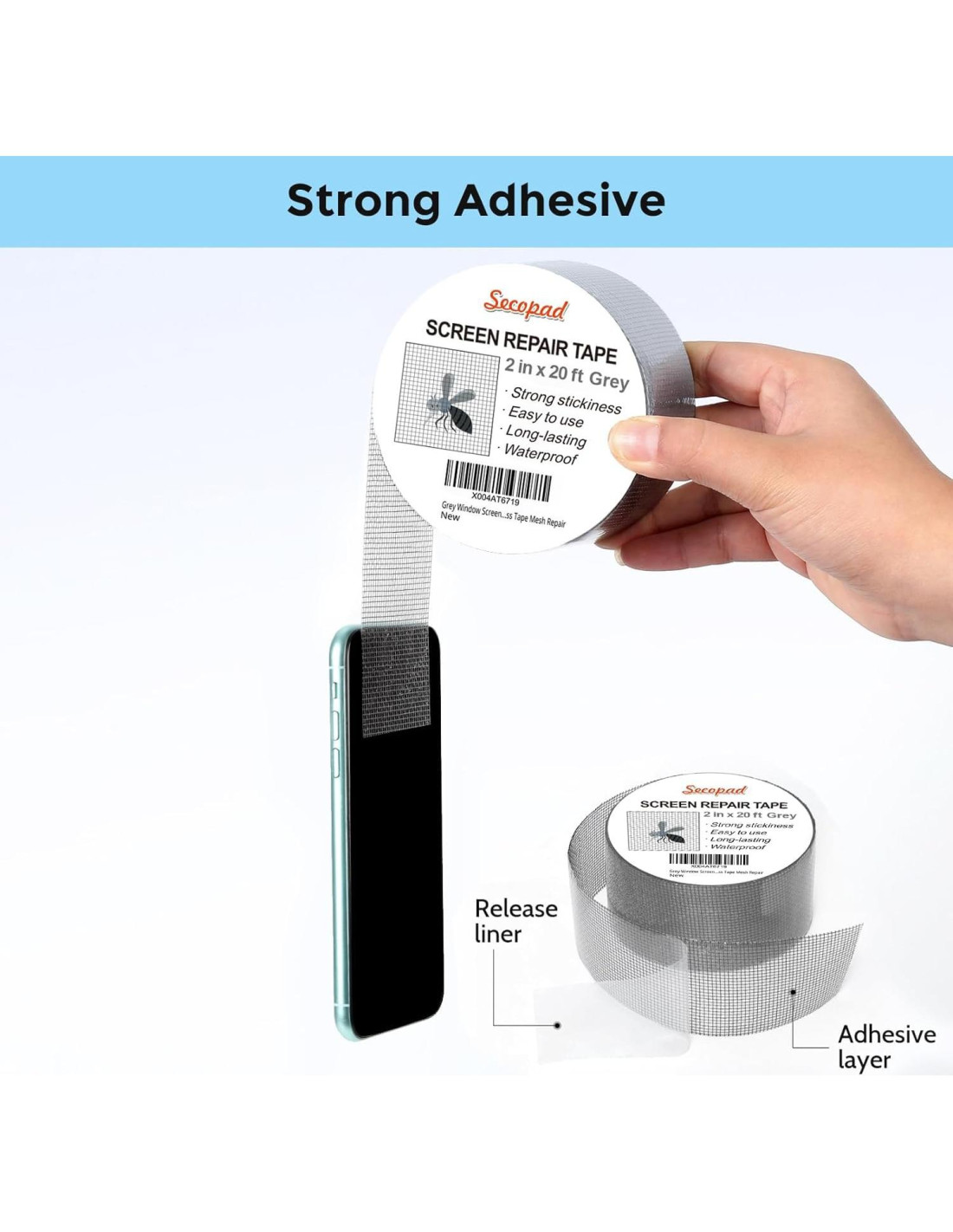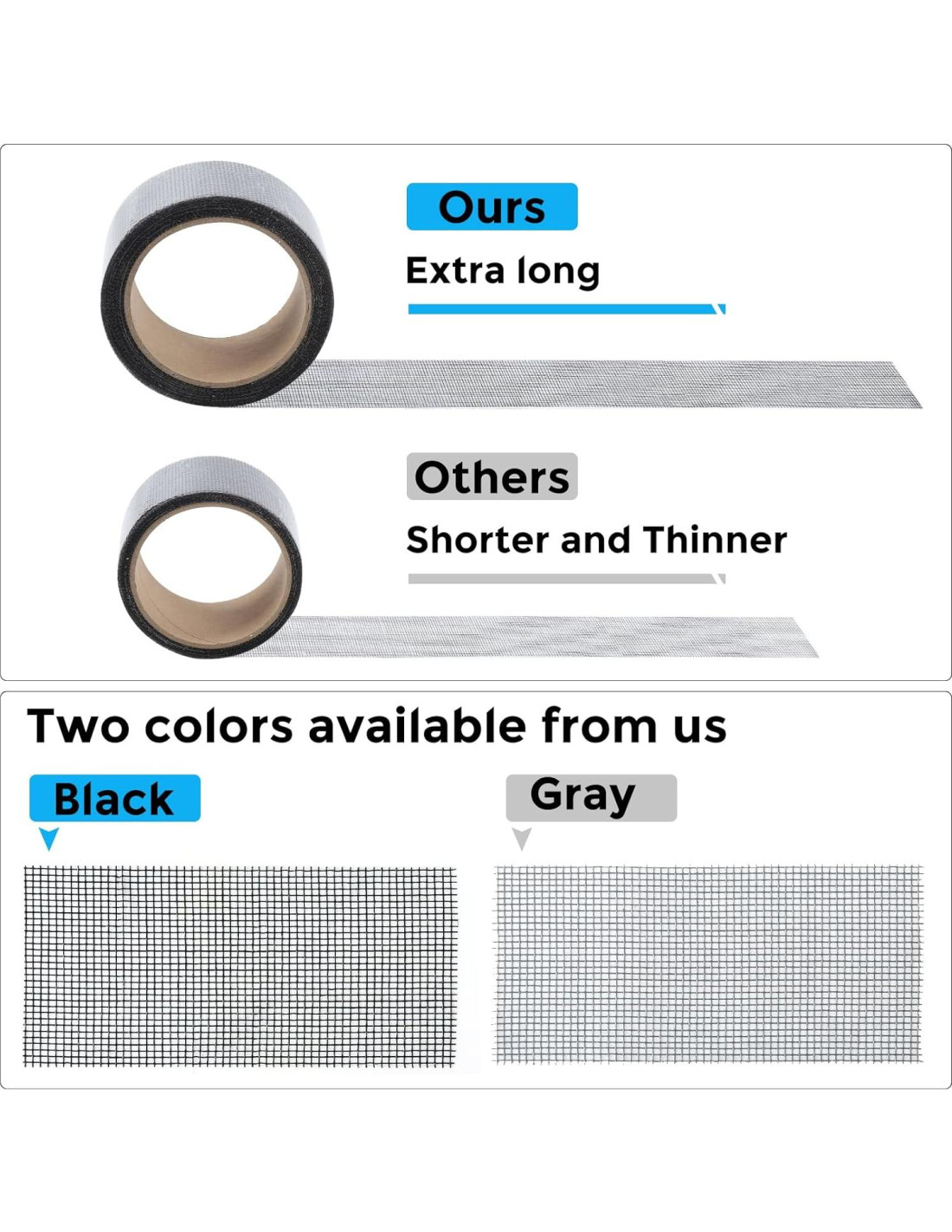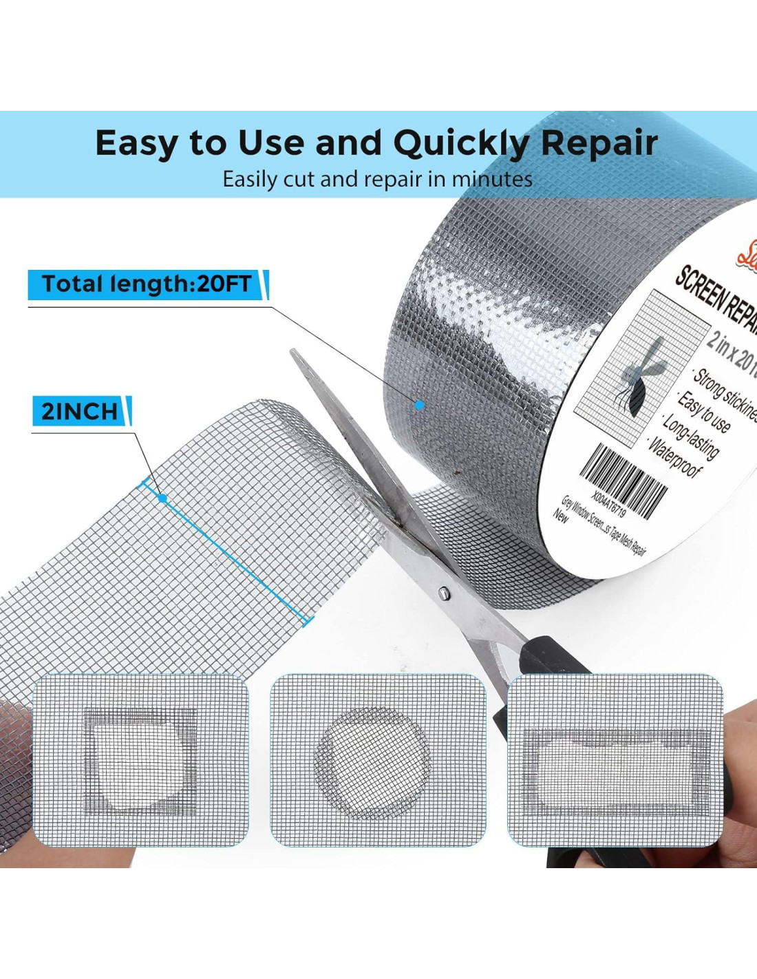- Extra largo y Ahorra dinero: El tamaño de la cinta de reparación de pantallas es 2 PULG X 20 PIES, puedes usar más de ellas para reparar un agujero más grande. No es necesario gastar mucho para reemplazar toda la malla de pantalla