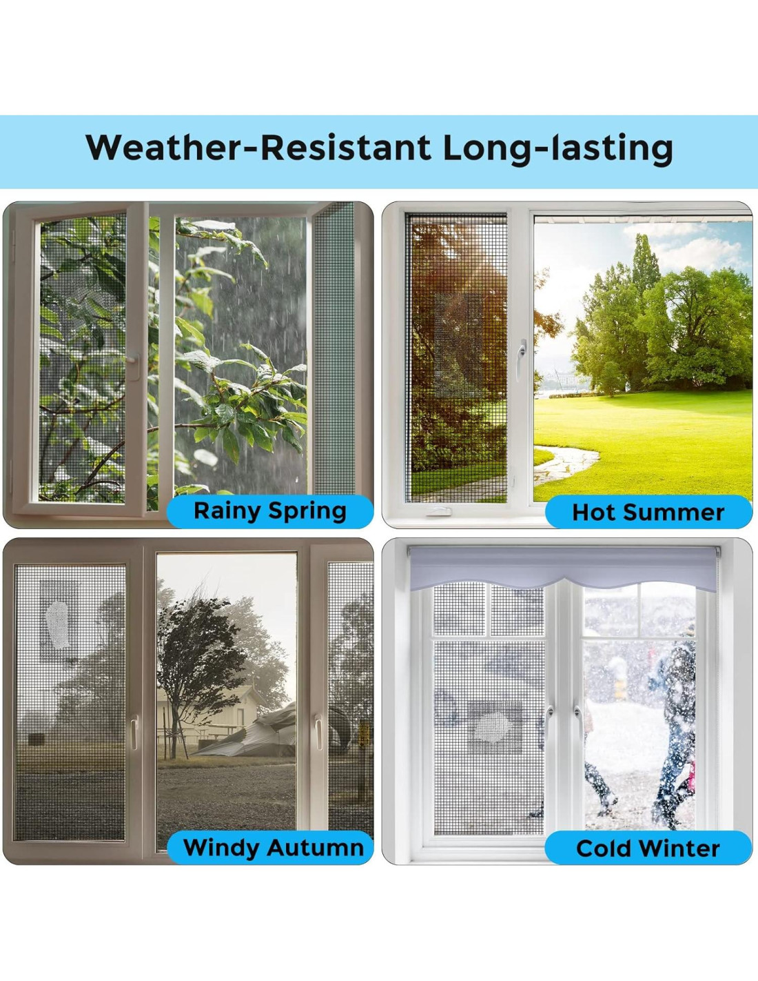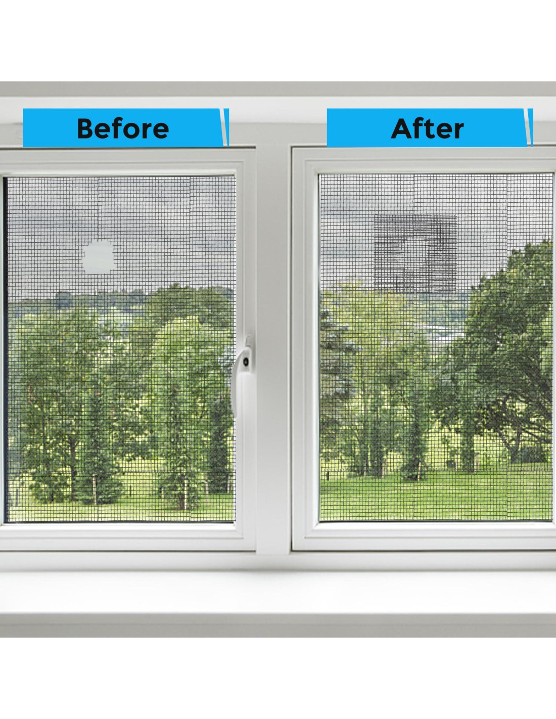 - Amplia Aplicación: El kit de reparación de pantallas de ventana se puede usar tanto en interiores como en exteriores, es impermeable y se puede usar normalmente entre -20C y 70C. Se puede aplicar para arreglar desgarros y agujeros en pantallas de ventanas, reparación de malla de puertas de pantalla, carpas, pantallas de piscina y otras reparaciones de malla