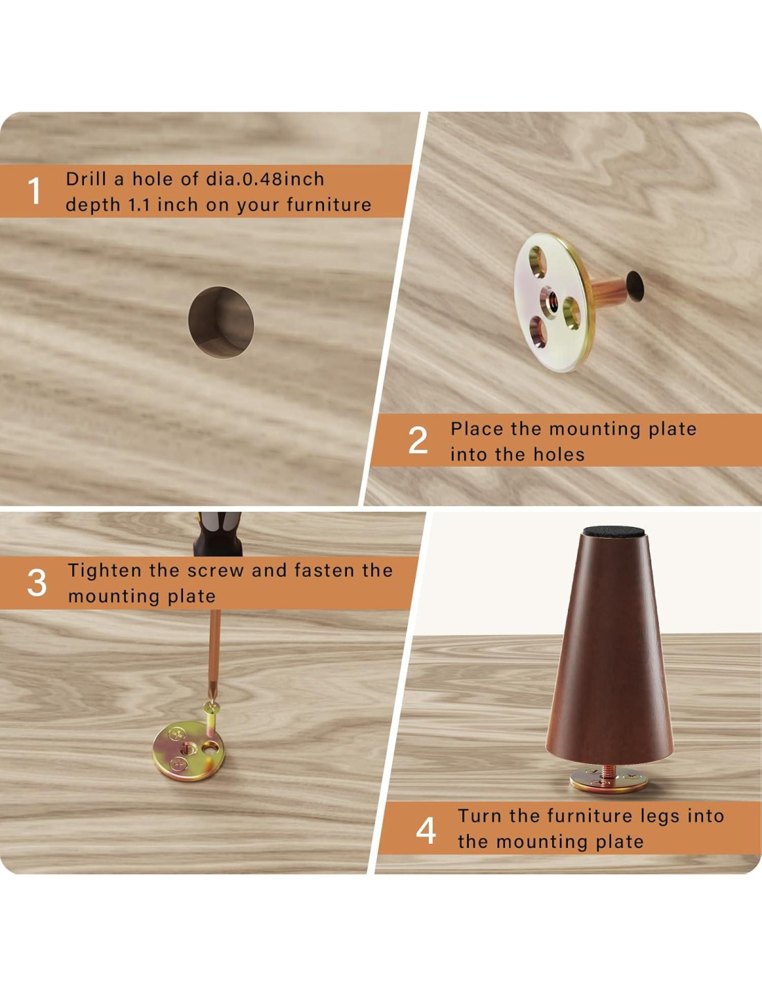 - Fácil de Instalar -- Cada paquete incluye 4 patas de madera y 4 tornillos de gancho de 0.76 cm (5/16"). Todos los accesorios están completos, solo conéctelo, instálelo y apriete los tornillos para usar. Es muy fácil reemplazar las patas de muebles viejas e instalar las nuevas.