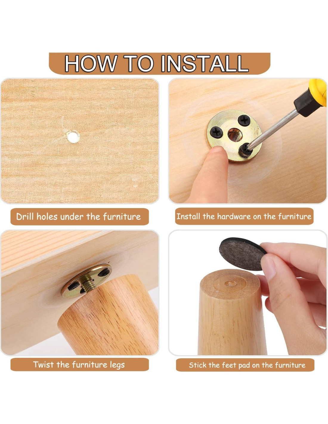 - [Actualiza y renueva con estilo] : Eleva tus proyectos de diseño interior en el hogar o la oficina con estas patas de madera suavemente cónicas. Reemplazar las patas de muebles viejas es una forma rentable de rejuvenecer la decoración de tu hogar o ajustar la altura de los muebles a tu preferencia.