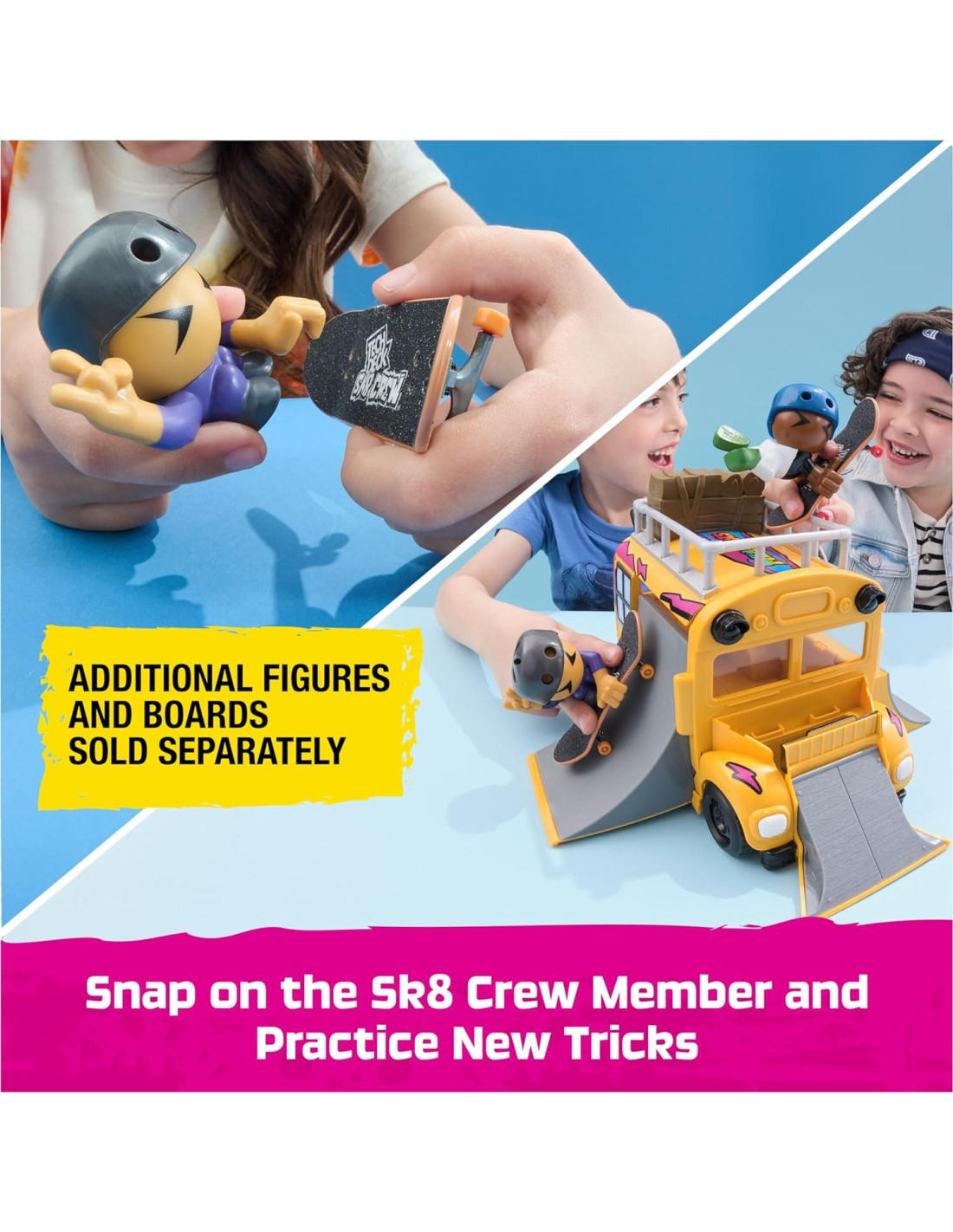 - CONVIÉRTETE EN UN PRO DE TECH DECK: Mejora el Autobús de Skate con fingerboards adicionales del equipo Sk8 de Tech Deck (se venden por separado) para nuevas formas de jugar y progresar