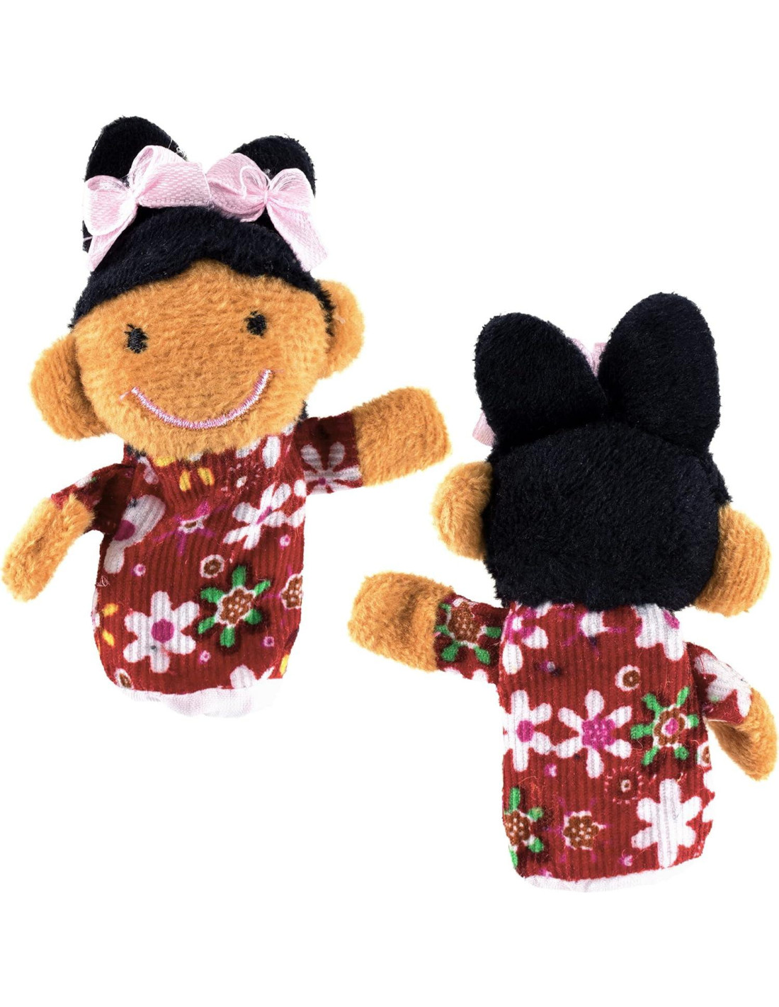 - Cada títere de dedo mide 2 pulgadas (5.08 cm). Cuando los brazos están extendidos, las dimensiones son de 3 pulgadas (7.62 cm) de ancho. Un total de 6 títeres de dedo miembros de la familia.