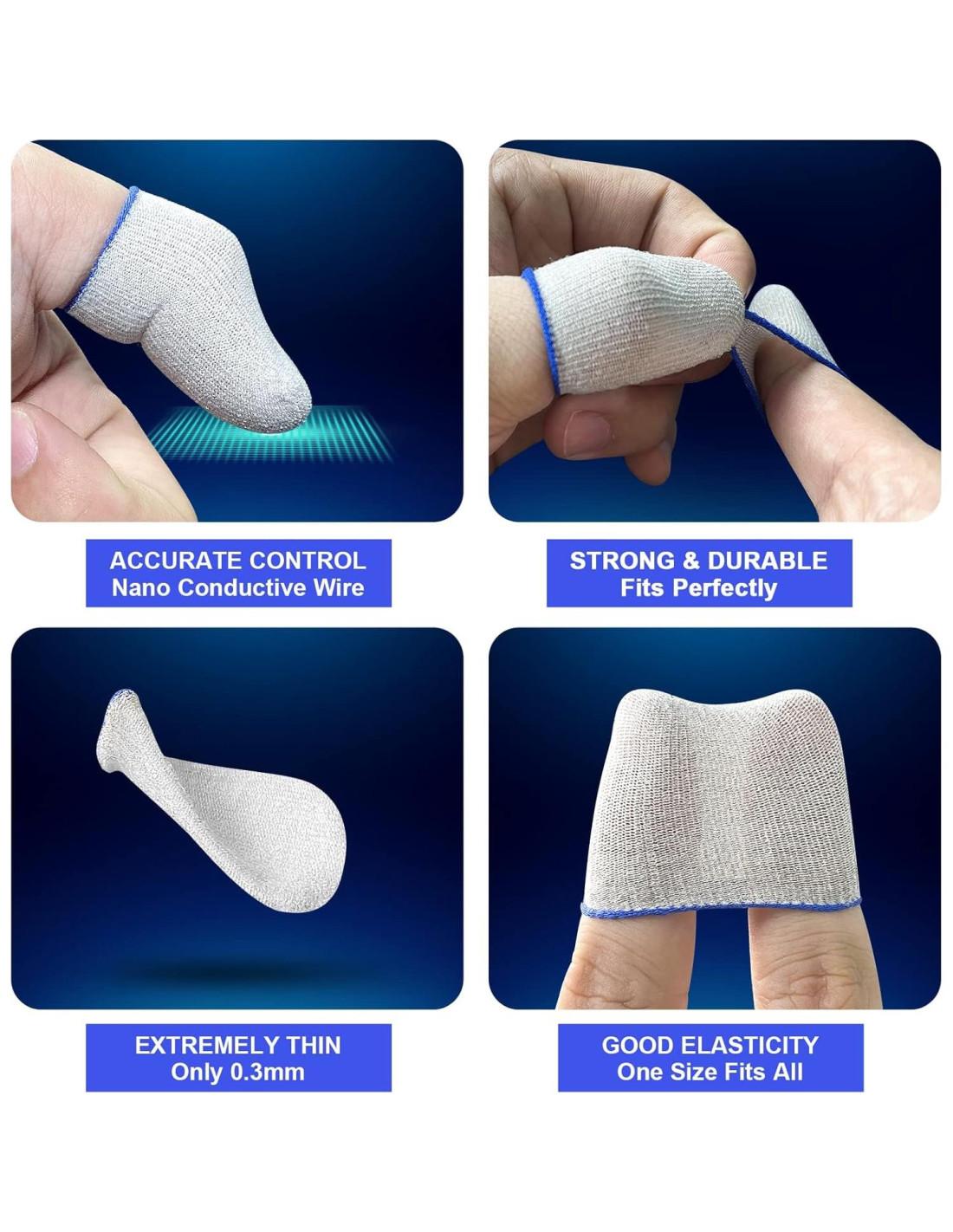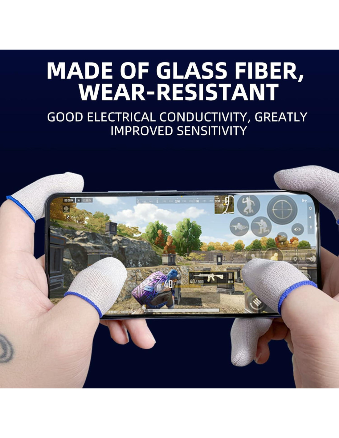 - MATERIAL DE CALIDAD: La manga para dedos de juego está hecha de fibra de vidrio, lo que aumenta enormemente la conductividad y sensibilidad, y es más suave y sensible que la fibra de carbono de plata ordinaria. Restauración más precisa de cada clic