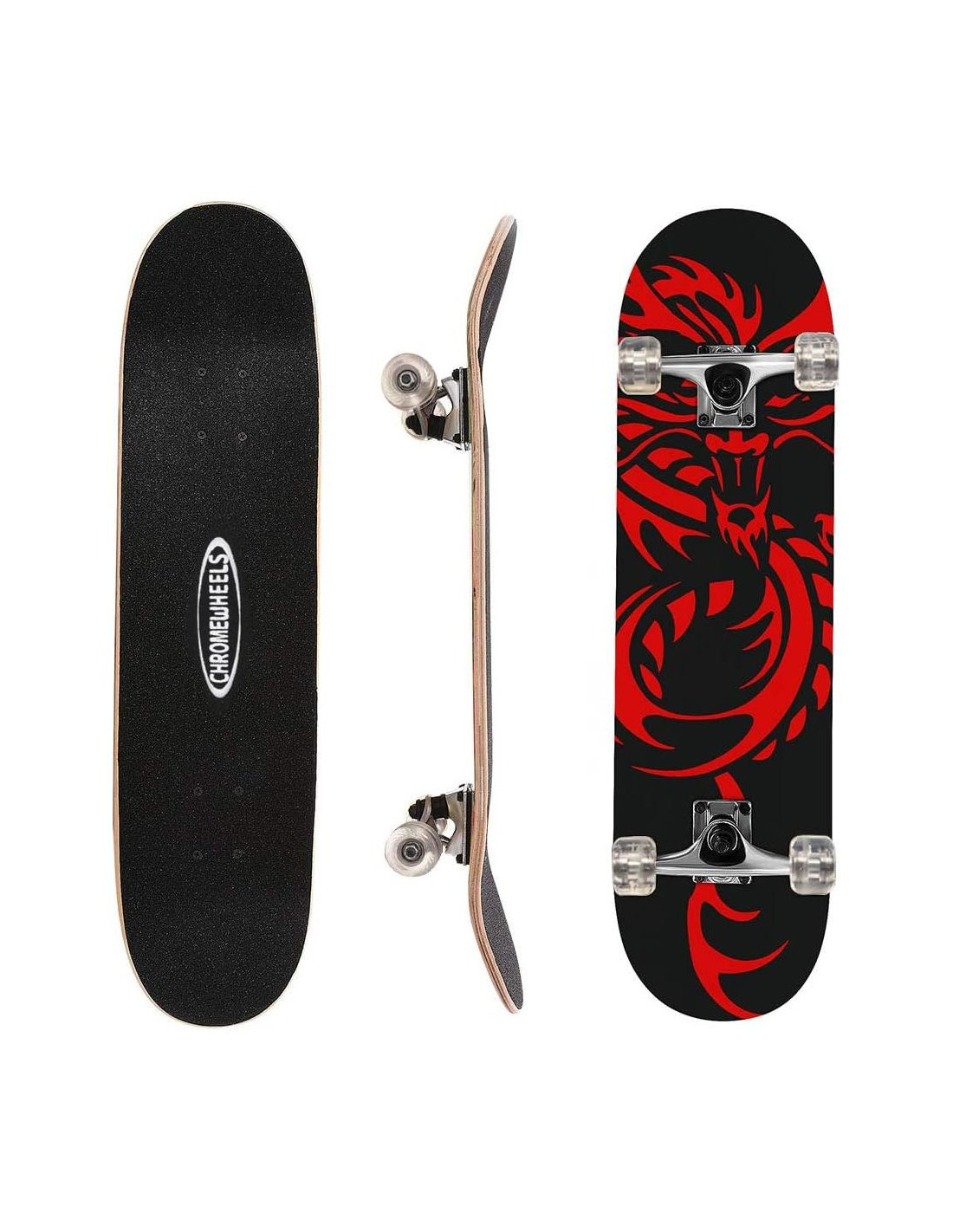 Esta Patineta ChromeWheels está diseñada para riders de todos los niveles, ideal para patinadores principiantes que quieren hacer algunos trucos básicos como 360's, acción OL y otros trucos básicos. La construcción de alta calidad y estabilidad hace que sea fácil aprender y disfrutar de la diversión que ofrece. Especificaciones: Bushings: bushings de PU super suaves Ruedas: PU Rodamientos: rodamiento de alta precisión ABEC-7 Diámetro de la rueda: 50 mm x 36 mm Ejes: ejes de alto rendimiento para ruedas Deck: madera de arce de 8 capas Tamaño del deck: 31" L x 8" W x 5" H Peso máximo soportado: 220 lbs (100 kg) Paquete incluido: 1 x Patineta