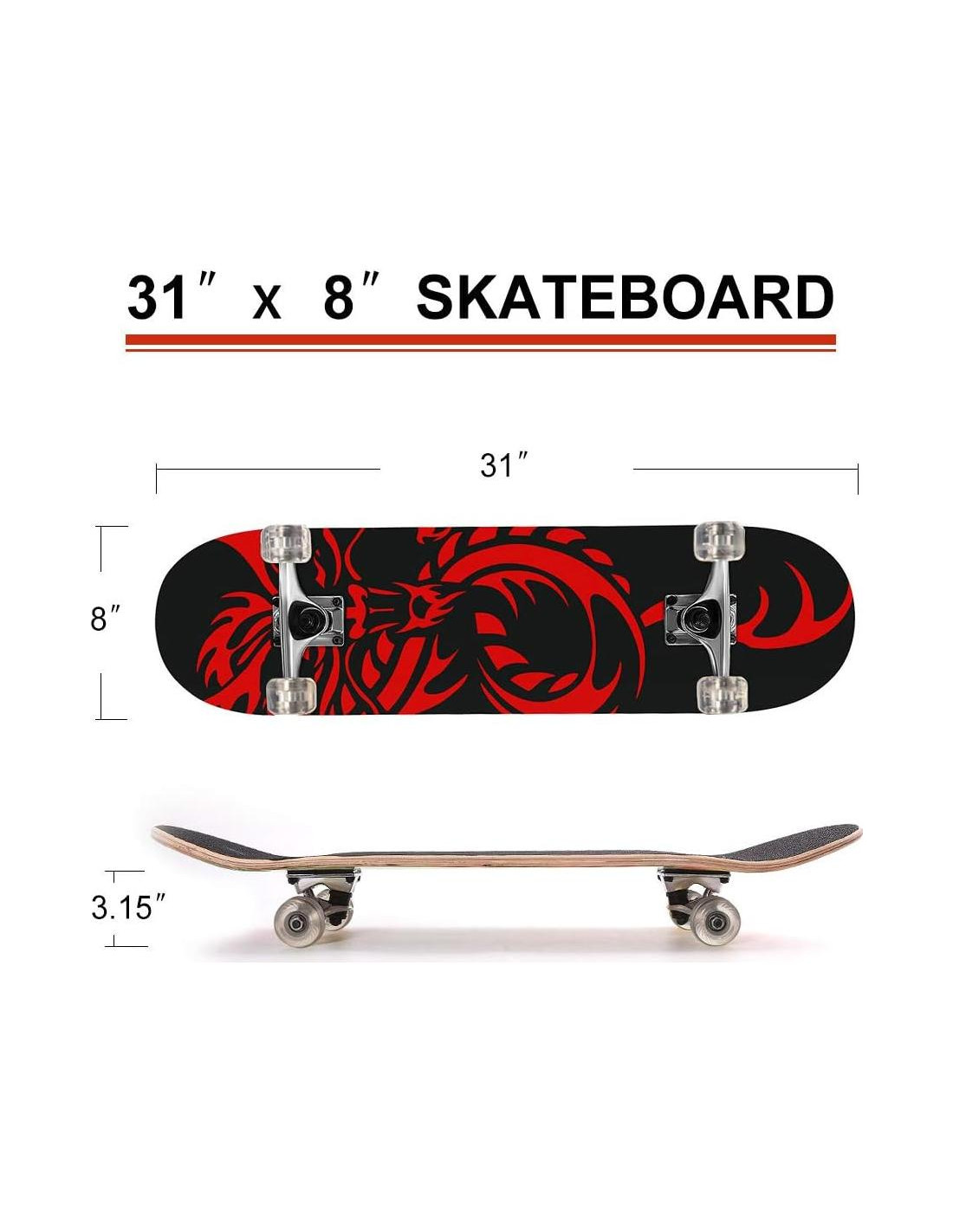 - Adecuado para Patinadores de Todos los Niveles - Diseño de doble kick cóncavo de tamaño completo de 31 x 8 pulgadas (78,74 x 20,32 cm) con patrón vintage proporciona mejor control y facilidad para frenar; esta patineta es ideal para principiantes y profesionales que realizan algunos trucos básicos y otros.
