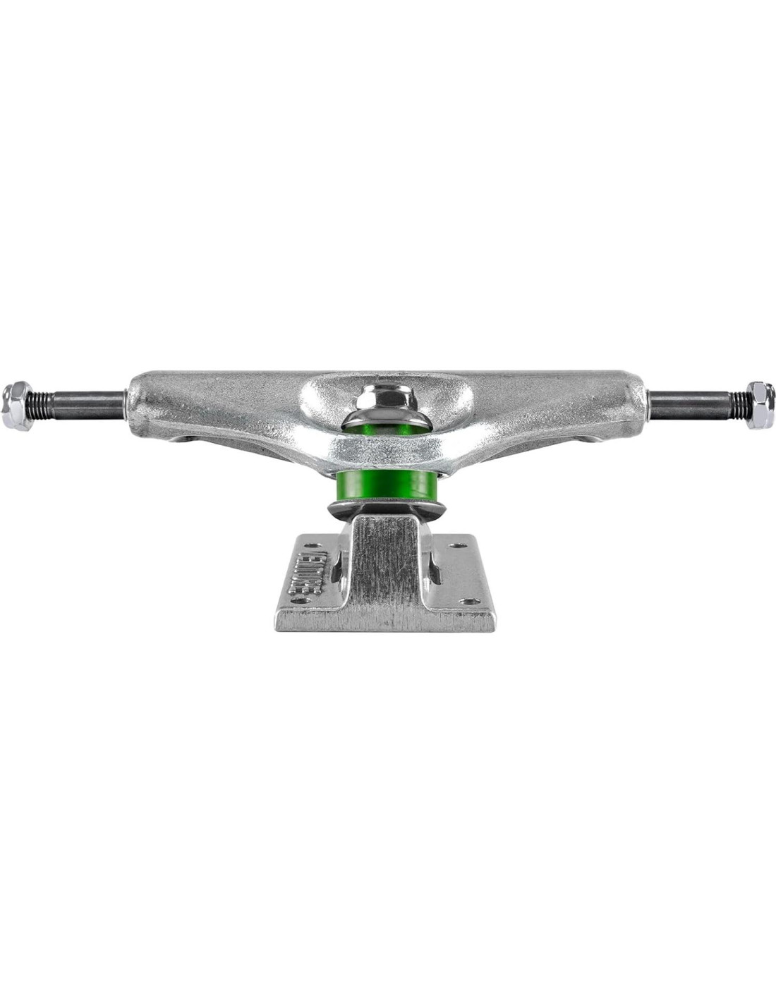 Un nuevo concepto para una marca legendaria en el skateboarding. Venture fue pionera en el diseño de camiones altos/bajos y lo están haciendo de nuevo con las ediciones de equipo de camiones sueltos. Finalmente, un camión específicamente diseñado para... perdedores? Los camiones sueltos de Venture vienen con bujes superiores de stock más cortos para dar a tus camiones más espacio para patinar suelto. Con un colgante y base pulidos de color plateado con bujes verdes claros de 90A. Venture 5.8 = 8.5 pulgadas de eje. Incluye 2 camiones.