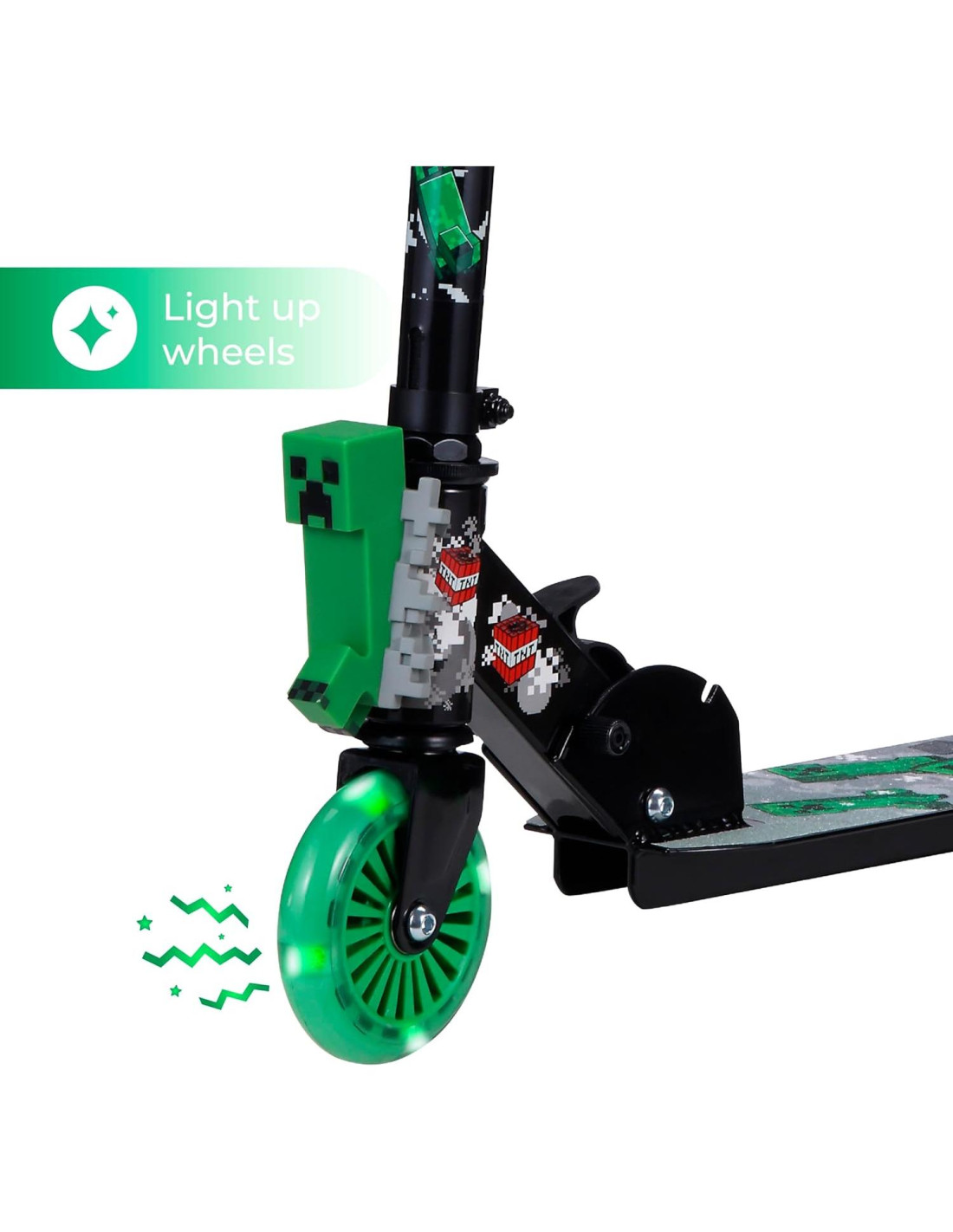- Deslízate Sin Esfuerzo: Nuestro patinete de Minecraft viene equipado con ruedas de 200 mm de alta recuperación, extra grandes y un Mecanismo de Absorción de Choques que te brinda un viaje suave y cómodo en superficies duras e irregulares, haciéndolo adecuado para muchos tipos de aceras. Una plataforma antideslizante texturizada que te permite mantener fácilmente tu posición mientras te deslizas de un lugar a otro.