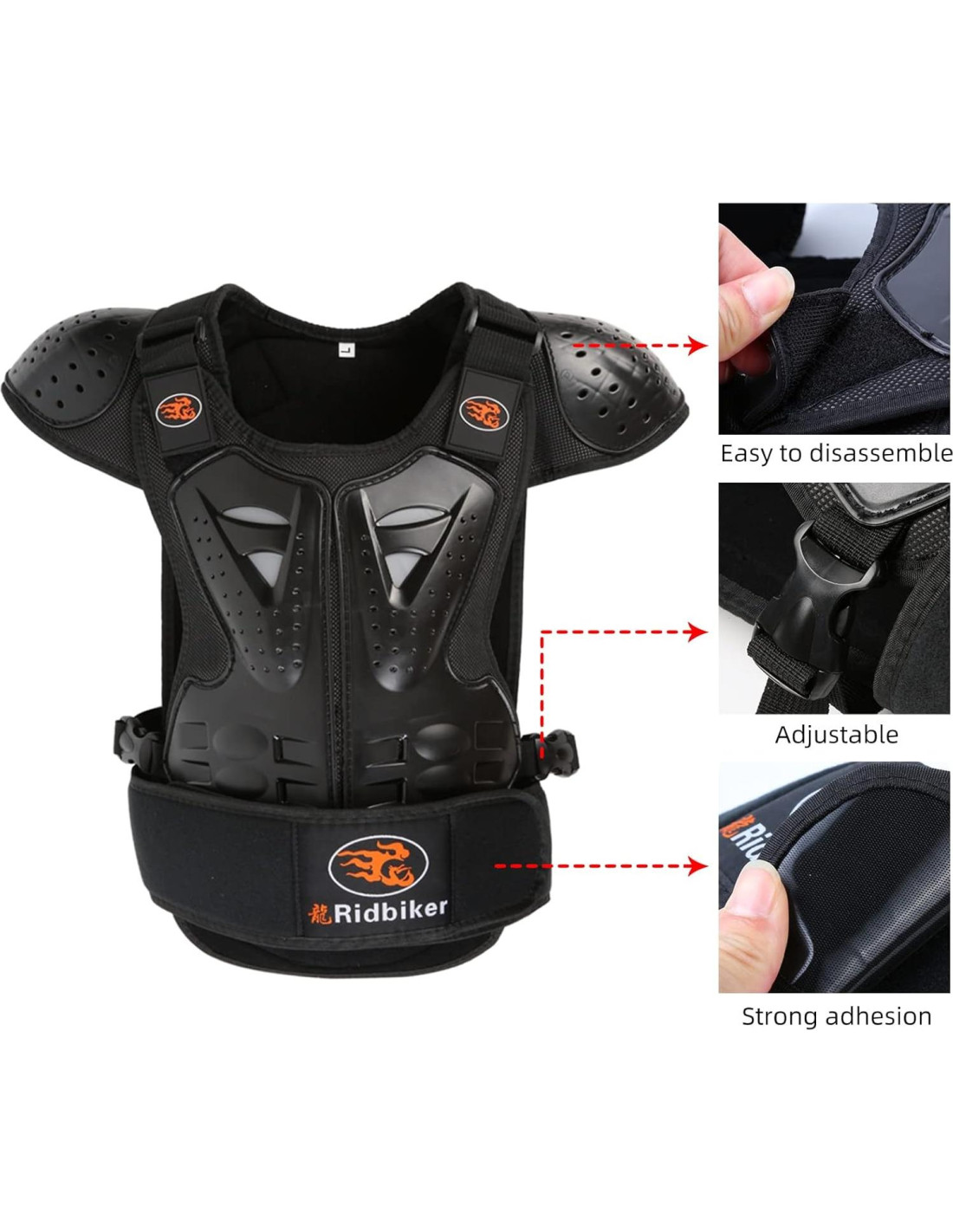 Equipamiento de Motocross para Jóvenes, Protector de Montar con Protectores de Rodillas y Almohadillas para Codos para Ciclismo... incluye protector de pecho para niños, almohadillas para codos y protectores de rodillas. El tamaño se puede ajustar para que les quede al menos durante los próximos dos años. Este conjunto de equipamiento de motociclismo para niños es para niños de entre 4 y 12 años. Hay 4 tamaños y 6 colores para elegir, proporcionando seguridad para las actividades al aire libre de los niños durante su infancia. Equipamiento de Protección para Motocicletas para Jóvenes Protector de Pecho de Motocross para Niños y Niñas Ciclismo. ¿Protege la columna vertebral? Como protector espinal para niños, el diseño en forma de U extendido incluso protege el coxis. El diseño es corto en la parte delantera y largo en la parte trasera, el niño puede inclinarse o sentarse y descansar, cómodo y libre. ¿Es adecuado para niños de 12 años? Adecuado para niños y niñas de 3 a 12 años. Para motocicleta, motocross, patineta, patinaje, nieve, fuera de carretera, etc. cualquier deporte al aire libre. Diseño de cierre de gancho y bucle para fácil remoción. Puedes ajustar el tamaño de la cintura a la mejor ubicación. Cintura elástica ajustable, refuerzo interno proporciona soporte para la cintura y protege la columna lumbar. Hecho de carcasa de PP resistente, espuma elástica alta de 7 mm y terciopelo. Gran transpirabilidad y excelente resistencia al impacto y abrasión para mantener a los niños seguros. El pecho delantero y la columna trasera están protegidos por armadura de carcasa de PP resistente a impactos de alta resistencia, brindando la mayor protección al niño. La tela de malla transpirable más interna se ajusta a la piel de manera cómoda y seca. Antes de realizar un pedido, por favor confirma la tabla de tamaños. Ajustable en múltiples lugares, adecuado para niños y adolescentes de 3 a 12 años. Chaleco de Armadura Corporal para Niños. Conjunto de Armadura para Motocicleta para Niños. Conjunto de Equipamiento para Motocicleta. Traje de Equipamiento para Motocicleta. Conjunto de Equipamiento para Motocicleta para Niños. Conjunto de Protector de Pecho para Niños. Conjunto de Chaleco de Armadura Corporal para Niños.