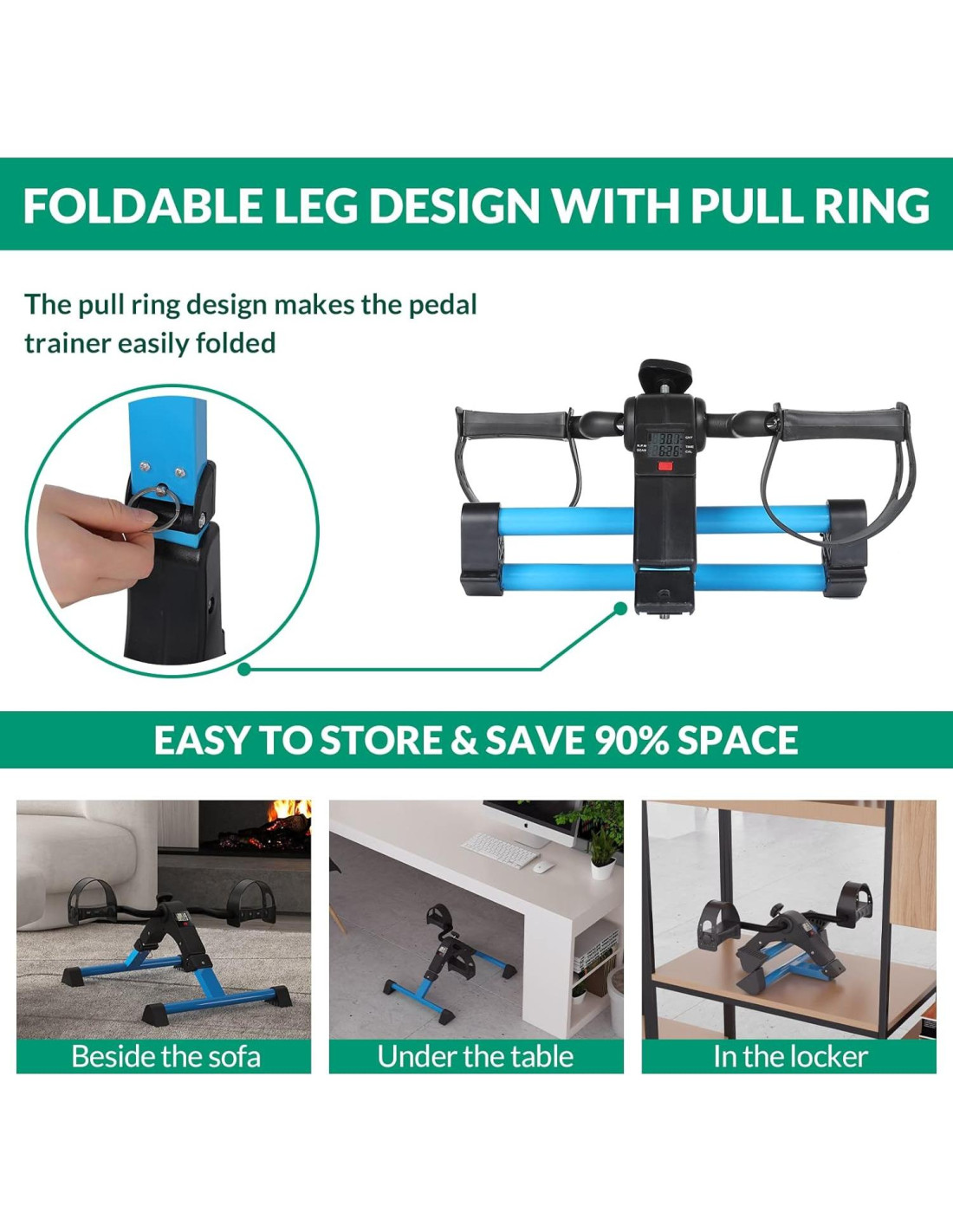 - [EJERCITADOR MULTIFUNCIONAL] El ejercitador de pedales tiene varias formas de ejercitar nuestros brazos y piernas, puedes usarlo debajo de la mesa de trabajo o en otro lugar en tu tiempo libre. Puede hacer que las personas con sub-salud o los trabajadores que carecen de ejercicio obtengan ejercicio adecuado y mejoren la circulación sanguínea, sin necesidad de salir, sin interferencia del clima. También puedes relajarte y aliviar el estrés haciendo ejercicio.