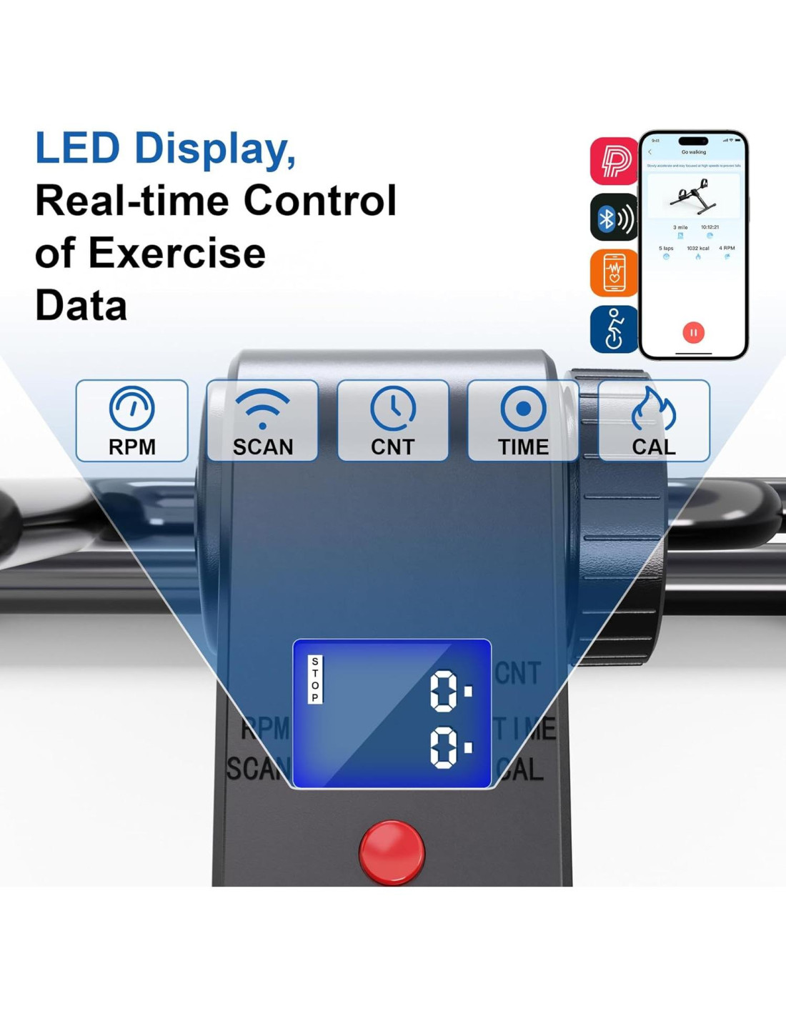 - Equipado con una pantalla LCD fácil de leer, este mini ejercitador de pedales muestra datos en tiempo real incluyendo conteo, escaneo, tiempo, velocidad y calorías quemadas, ayudándote a mantenerte al tanto de tu progreso