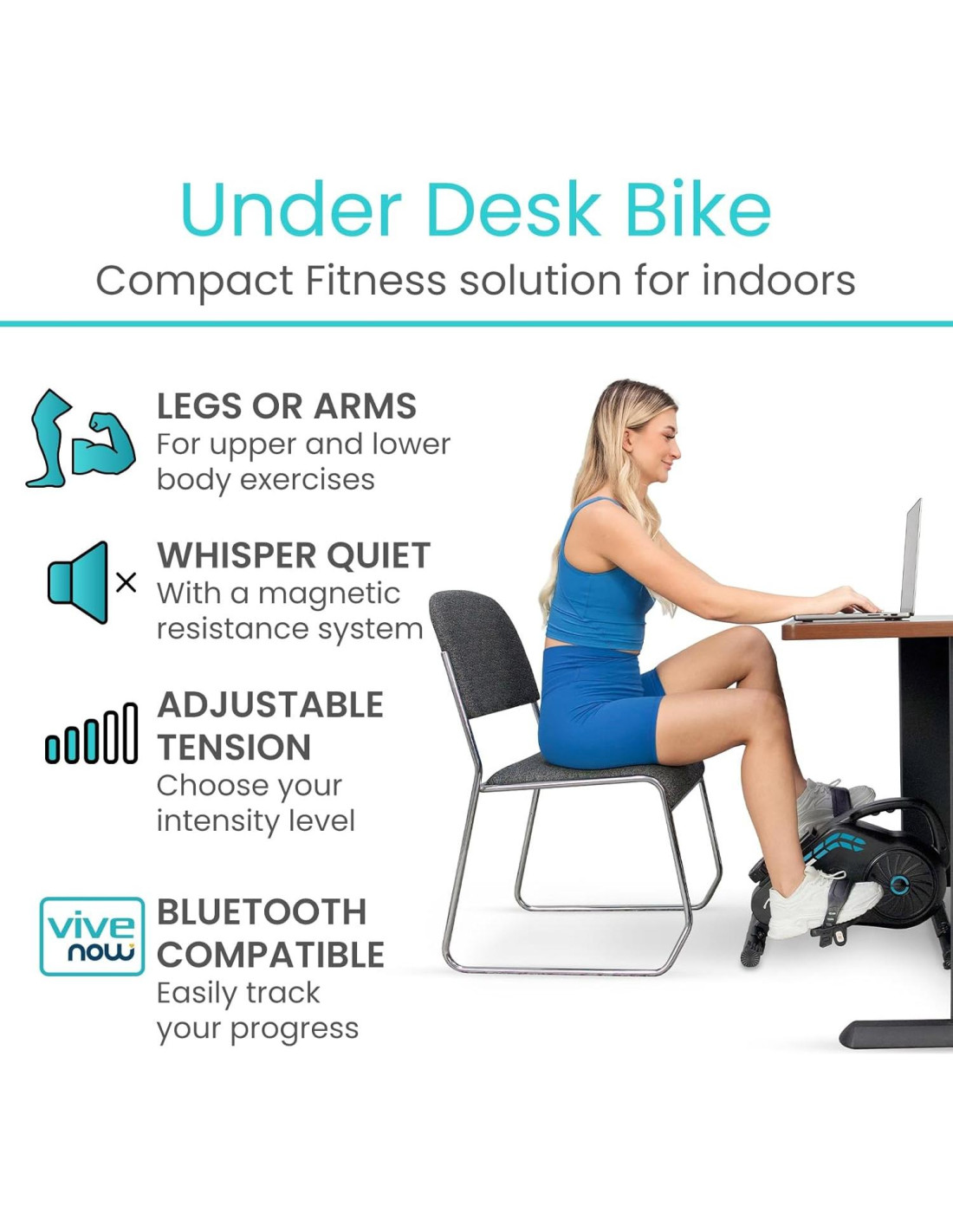 - COMPACTO Y PORTÁTIL: Mantente activo y ejercita tus brazos y piernas con el Ejercitador de Pedales Magnético Inteligente de Vive Health. Con un diseño compacto y portátil, puedes usar este ejercitador de pedales en casa, en el trabajo o mientras estás en movimiento. El diseño elegante se adapta discretamente debajo de una mesa o escritorio, para una adición conveniente y fácil de almacenar a tu rutina de fitness o recuperación.