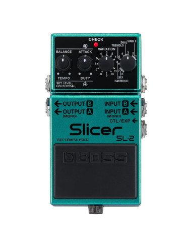 SL-2 Cortador Cortando inspiración Envuelve tu música en vibrante energía rítmica con el SL-2 Cortador, una herramienta creativa inspiradora llena de ritmos coloridos. Este pedal original de BOSS corta tu sonido en patrones percusivos únicos, emparejado con filtros y efectos internos, y proporciona múltiples opciones de salida, capaz de dar vida a los ritmos a lo largo del campo estéreo.