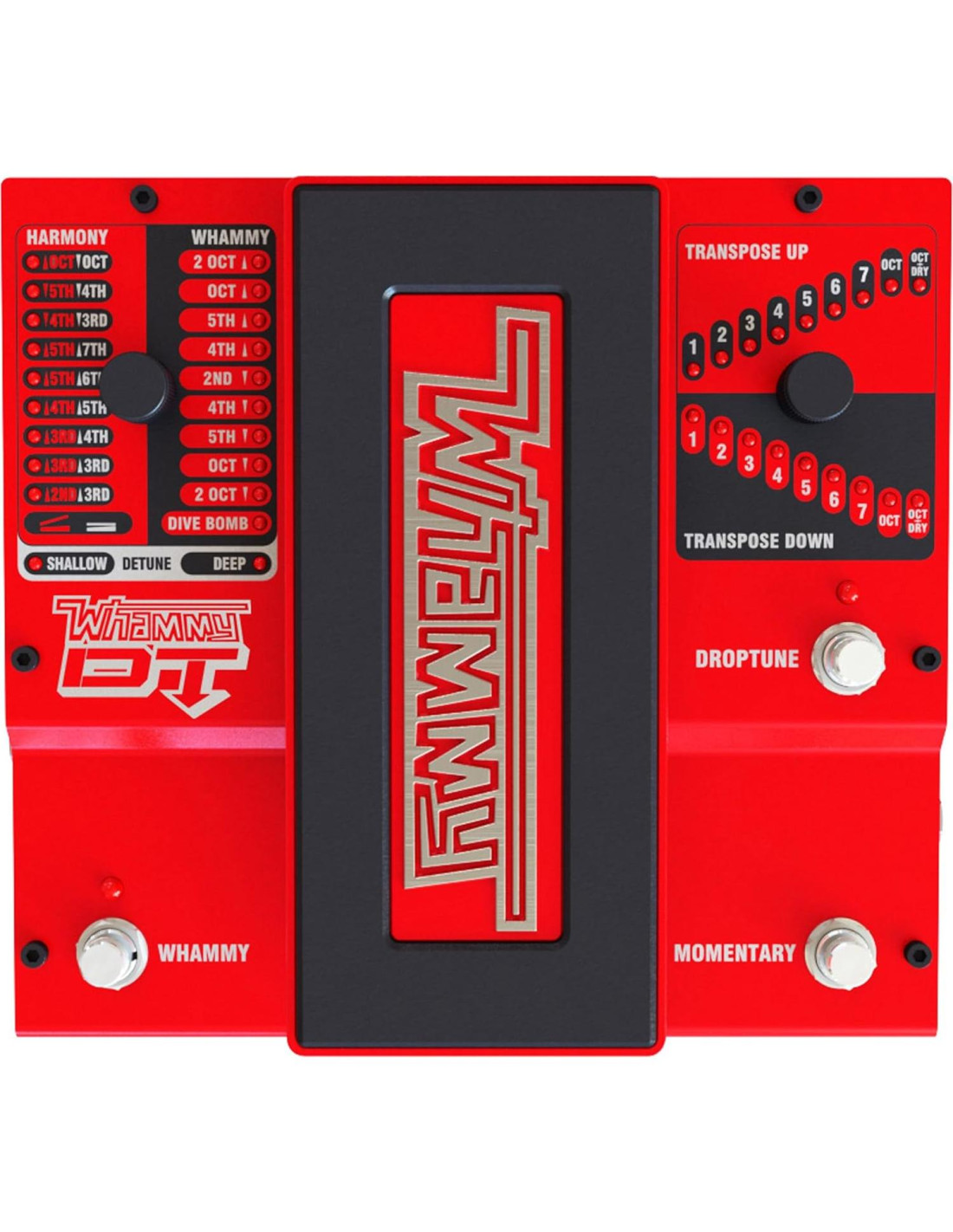 Presentamos una nueva adición a la familia DigiTech Whammy -- Whammy DT! Hemos tomado el pedal de efectos de cambio de tono premier, añadido afinación descendente y bypass verdadero para traerte el pedal Whammy definitivo, el Whammy DT. Con el Whammy DT, puedes modificar tu afinación sin tener que cambiar de guitarra o pausar incómodamente para hacer ajustes para la próxima canción. Los cambios de tonalidad están al alcance de tus pies y toman solo momentos, lo cual es crucial cuando el público siente tu vibra. Los efectos de cambio de tono realmente ayudan a que tu actuación con la guitarra se destaque y el pedal Whammy ha sido el efecto de cambio de tono central para artistas famosos durante más de 20 años. Ahora añade afinación completa descendente y elevada además del clásico cambio Whammy a tu arsenal de efectos y descubre por qué el Whammy DT es el pedal de efectos de cambio de tono premier para cada guitarrista.