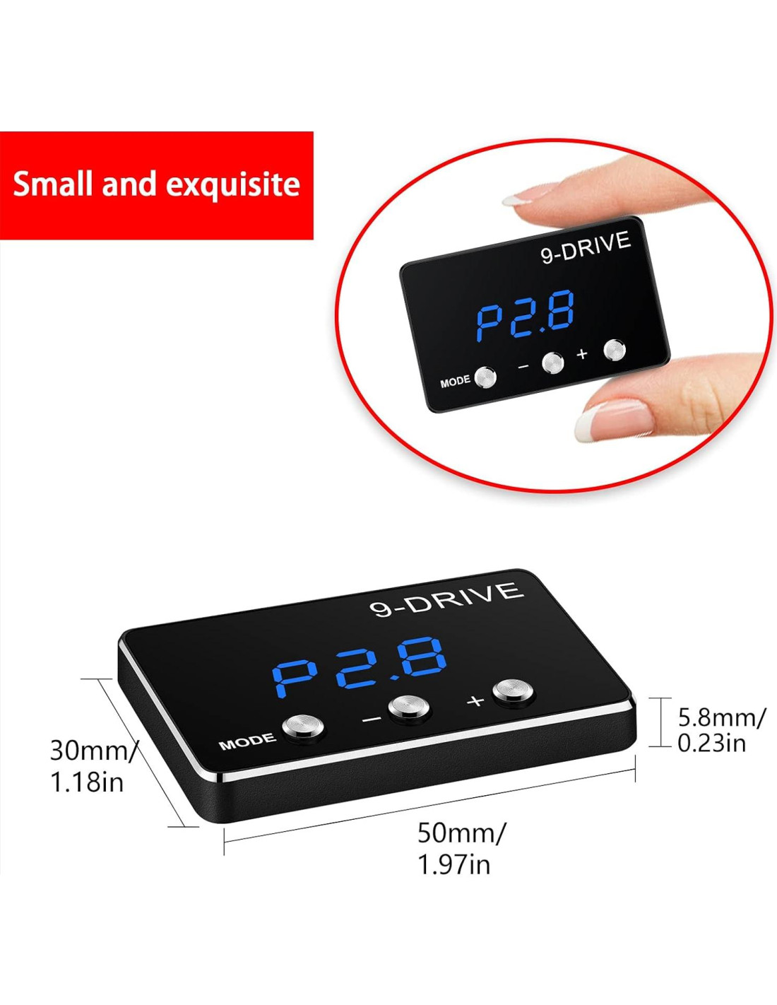 - [9 modos] El controlador de respuesta del acelerador electrónico tiene 9 modos diferentes, cada modo de conducción tiene 9 niveles de ajuste de intensidad, puede ajustarlos para encontrar el modo más adecuado. El acelerador electrónico tiene una pantalla LED de 3 caracteres y 3 botones ajustables. Puede ver el número del modo y el nivel de intensidad en la pantalla, y puede ajustar fácilmente el modo a través de los botones.