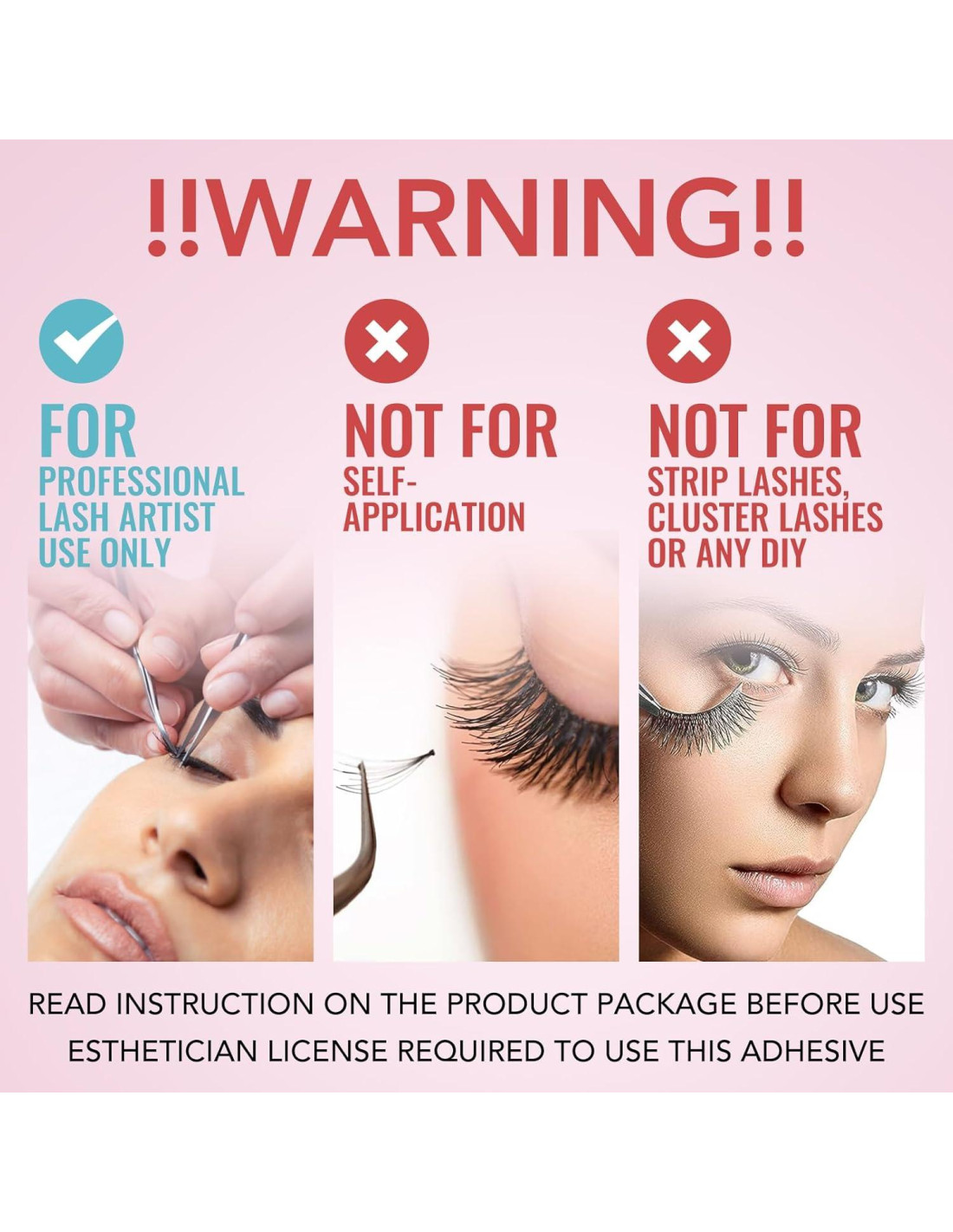 - ¡ATENCIÓN! Solo para Uso Profesional en Salones. Este pegamento para pestañas está destinado solo para uso en salones. Por favor, nunca lo use para auto-aplicación o con pestañas en racimo o tiras. Lea la descripción del producto cuidadosamente, usar este producto en contra de sus instrucciones puede causar reacciones. Puede llevarlo al salón y dejar que un artista profesional de pestañas lo haga por usted.