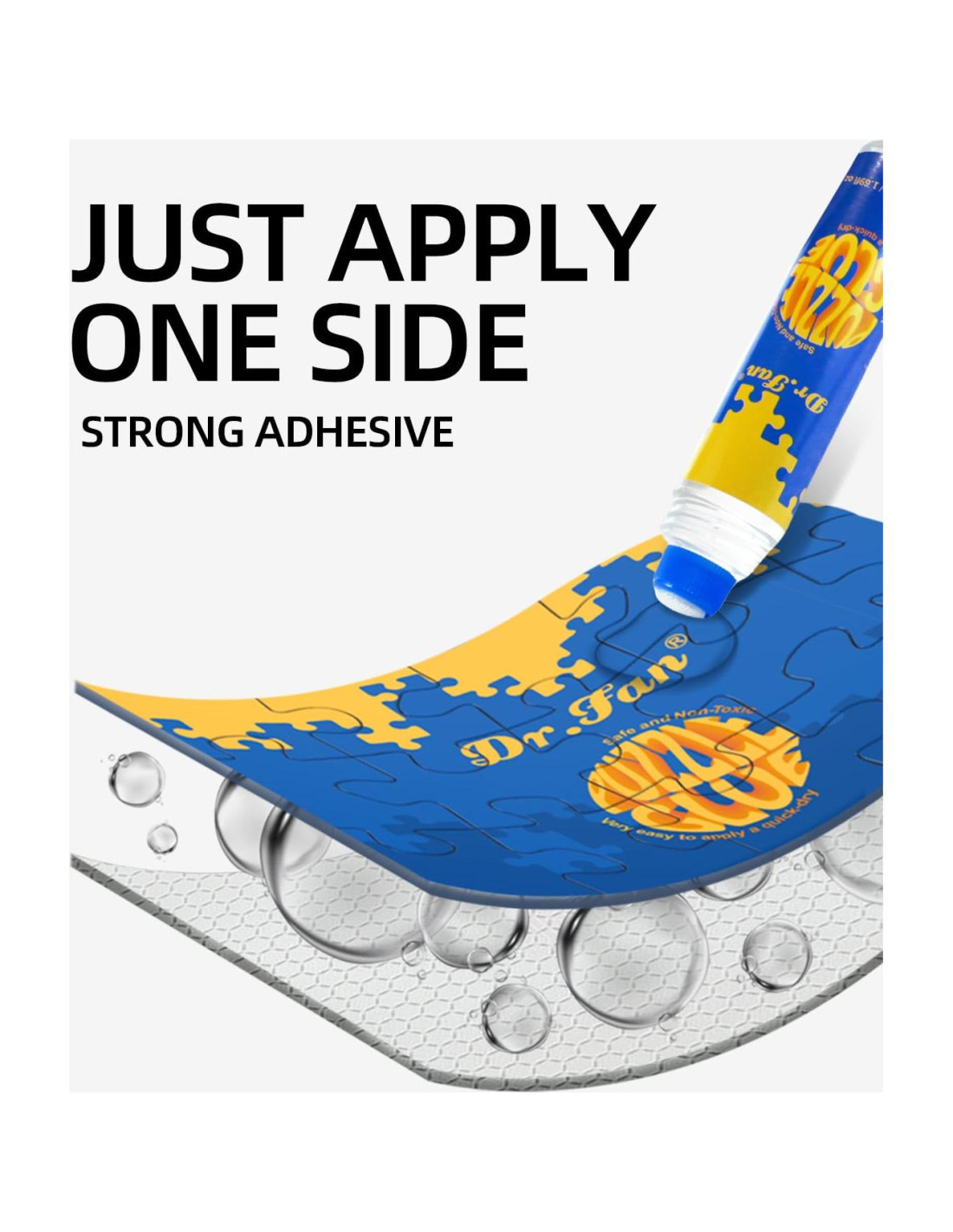 - [CALIDAD DE SEGURIDAD] DR.FAN posee la nueva técnica y tiene nuestra fórmula profesional de pegamento para rompecabezas (NO JUGUETES). El pegamento DR.FAN cumple con las pruebas ASTM D4236 y EN71-1,2,3,9, que son no tóxicas, libres de ácido, seguras de usar y lavables.