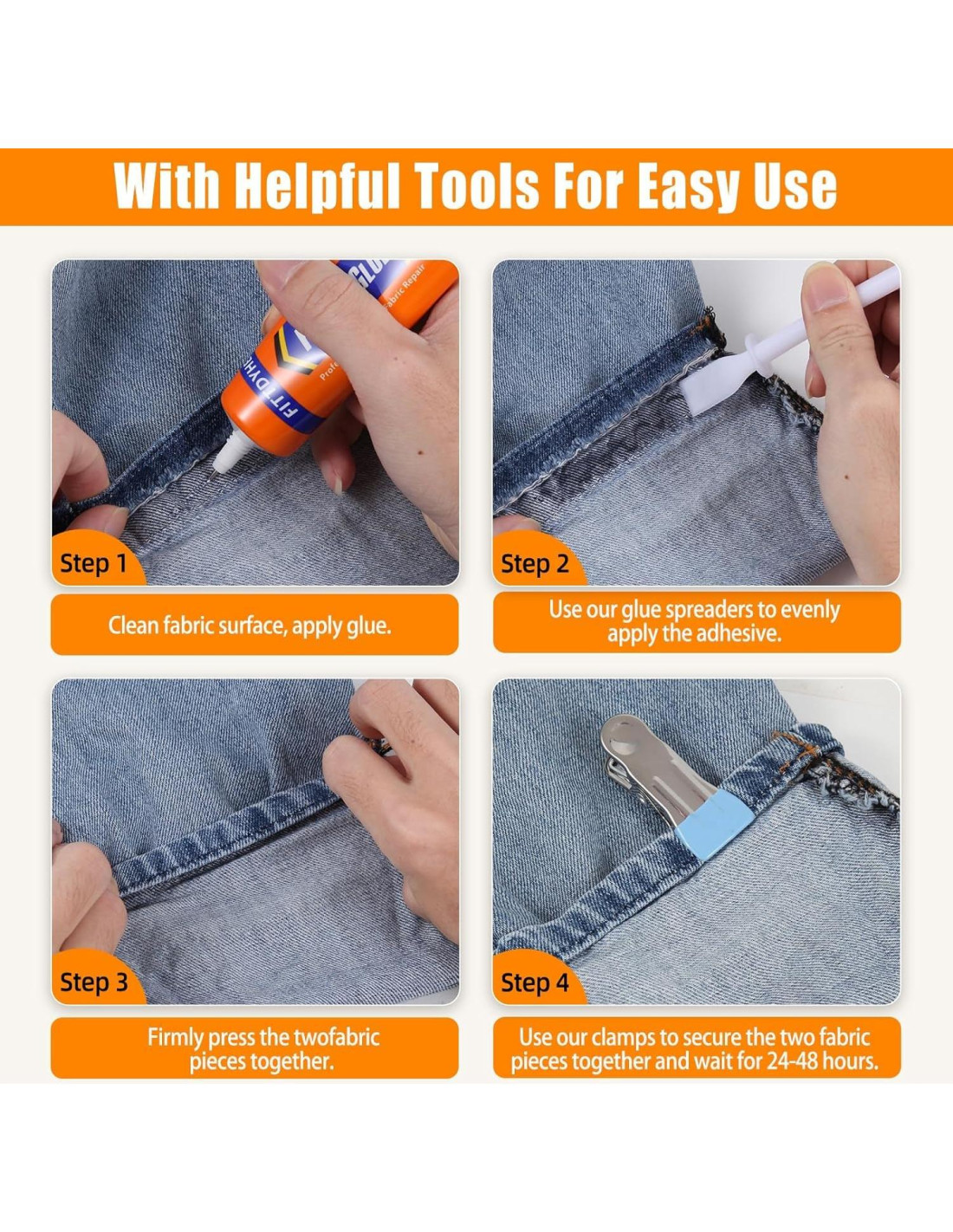 ¿Todavía estás frustrado por tu falta de habilidades de costura cuando se trata de reparar ropa? El pegamento para tela FITTDYHE puede abordar tus preocupaciones. El pegamento para tela FITTDYHE ofrece una solución rápida y permanente para reparar pequeños desgarros o adherir tela sin necesidad de una máquina de coser. Importante, nuestro pegamento para tela proporciona una solución permanente, manteniendo fuertes propiedades adhesivas después de ser lavado. Nuestro Pegamento para Tela crea una conexión transparente, incolora, flexible y permanente, a prueba de lavadora y secadora, ideal para Algodón, Denim, Fieltro, Forro polar, Cuero, Ante, Poliéster, Rayón, Fibras, Terciopelo, Telas y Más. ¡Ideal para alterar ropa, reparar artículos y recortar dobladillos!