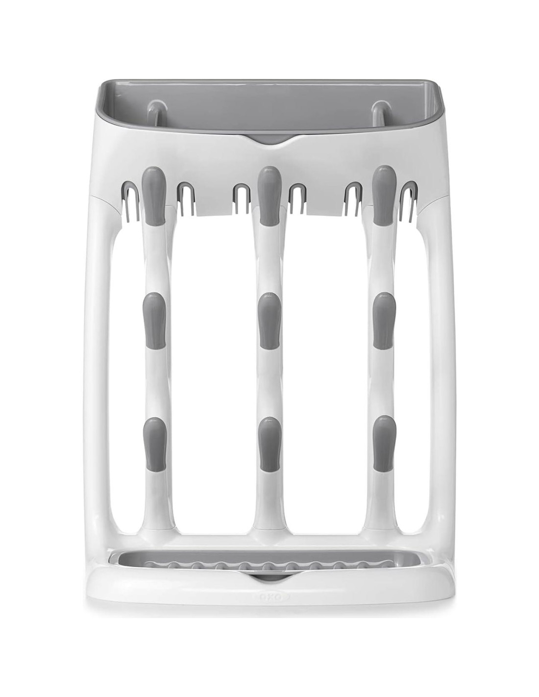 OXO Tot Soporte para Secado que Ahorra Espacio Utiliza el Soporte para Secado OXO Tot que Ahorra Espacio para secar botellas de bebé y tazas para sorber sin ocupar demasiado espacio. El diseño compacto cuenta con 9 ganchos angulados para botellas y tazas, además de un compartimento superior removible para tapas, pezones y otros artículos pequeños. OXO Tot Cepillo para Botellas con Limpiador de Pezones y Soporte - Gris El Cepillo para Botellas OXO Tot es la herramienta ideal para limpiar botellas de bebé. Combinando cerdas suaves para una limpieza delicada y cerdas firmes para un fregado serio, este práctico cepillo tiene un cuello flexible para alcanzar fácilmente el interior de botellas contorneadas.