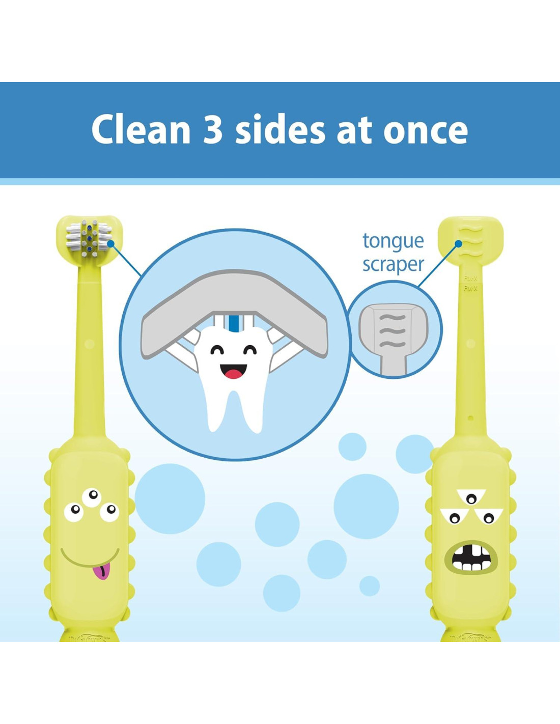 - CEPILLO DE DIENTES PARA NIÑOS DE TRES LADOS. El Cepillo de Dientes Dr. Brown's ToothScrubber tiene una cabeza de cepillo de tres lados con cerdas suaves que envuelven el diente para limpiar tres superficies a la vez.
