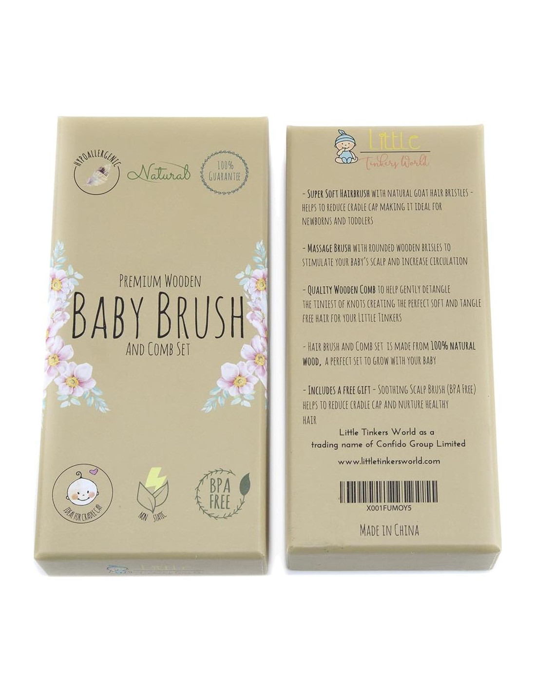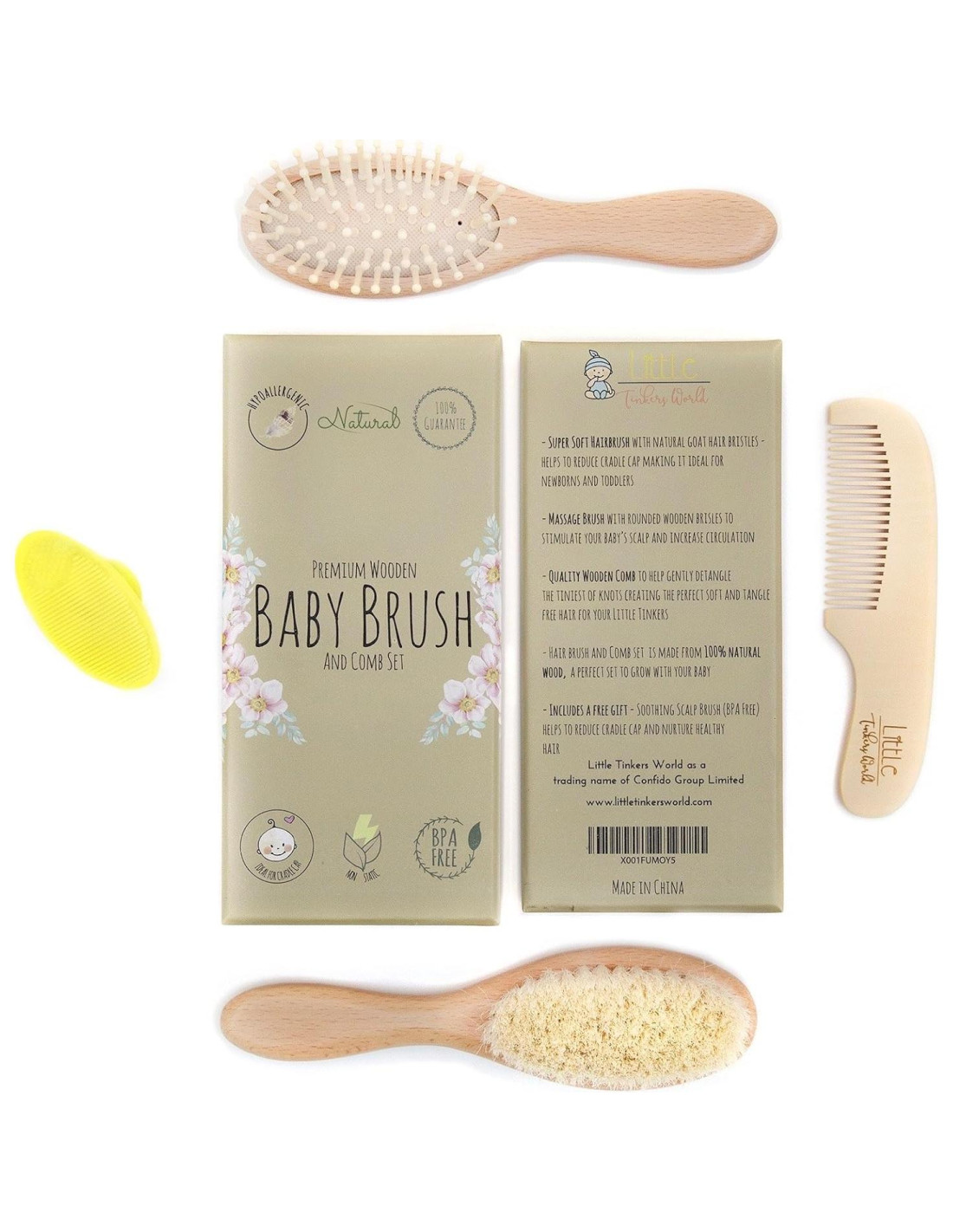 Si estás buscando un cepillo seguro y suave para mantener el cuero cabelludo de tu bebé limpio y su cabello arreglado, ¡lo has encontrado! Este juego de 4 cepillos para bebés tiene todo lo que necesitas para arreglar y limpiar el cabello de tu bebé mientras aseguras que se sienta cómodo y feliz. El Juego de Cepillo y Peine para Bebés de Madera contiene un cepillo suave para el cuero cabelludo del bebé que tiene cerdas de pelo de cabra 100% natural que son ultra suaves, junto con un Peine para Bebé, que es del tamaño justo para tu bebé. A lo largo del primer año de vida de un bebé, es probable que se vea afectado por la costra láctea. No causa dolor ni irritación, sino que aparece como parches escamosos o costras gruesas. Con el Cepillo de Cerdas Suaves de Cabra Natural y el Cepillo de Champú para Bebé de Silicona SIN BPA, puedes eliminar eficazmente la costra láctea y prevenir la acumulación. Hecho de madera de haya maciza de alta calidad y pelo de cabra 100% natural ultra suave, este cepillo para bebés es antiestático e hipoalergénico, por lo que no causará irritación y ayudará a calmar y suavizar el cuero cabelludo de tu bebé. Este cepillo para bebés es la manera perfecta de prevenir la costra láctea, mejorar la circulación sanguínea y mantener el cuero cabelludo de tu niño pequeño suave, mientras arreglas su cabello al mismo tiempo. Los peines para bebés normales causan incomodidad a los bebés cuando se utilizan para desenredar nudos. Este peine para bebés natural es suave con la piel de tu bebé y ayuda a desenredar el cabello de tu niño pequeño mientras estimula el cuero cabelludo para un cabello más saludable. Este cepillo de silicona seguro y suave es perfecto para lavar el cabello y la piel de tu bebé de la manera más suave posible. Cepillo de Cabello Natural, Cepillo de Masaje de Madera, Peine de Madera, Cepillo Suave de Silicona. Nuestros clientes son nuestra máxima prioridad, por lo que hacemos un esfuerzo adicional para garantizar que nuestros productos sean de alta calidad. Respaldamos la calidad de nuestro producto, por lo que ofrecemos un reembolso si no estás satisfecho con nuestro Juego de Cepillos para Bebés. No es fácil encontrar un gran regalo para el cumpleaños de un bebé o un baby shower, ¿verdad? No temas, nuestro Juego de Cepillos para Bebés unisex es un gran regalo para baby shower o un regalo de cumpleaños que es tanto considerado como práctico. Consigue este juego para tu propio bebé o como regalo para un baby shower y ten la seguridad de que este presente será amado. Hecho de madera de alta calidad y 100% natural, este cepillo para bebés es antiestático e hipoalergénico, por lo que no causará irritación y ayudará a calmar y suavizar el cuero cabelludo de tu bebé. Este cepillo para bebés es la manera perfecta de prevenir la costra láctea, mejorar la circulación sanguínea y mantener el cuero cabelludo de tu niño pequeño suave, mientras arreglas su cabello al mismo tiempo. El Cepillo de Cerdas de Cabra Natural ayuda a acondicionar el cabello y prevenir la acumulación. El cepillo de silicona se puede usar para lavar y desenredar el cabello de tu bebé. El Cepillo de Masaje de Silicona te permite lavar el cuero cabelludo de tu bebé sin causar incomodidad ni enredar el cabello, y ayuda a eliminar la costra láctea para un bebé súper lindo y feliz.