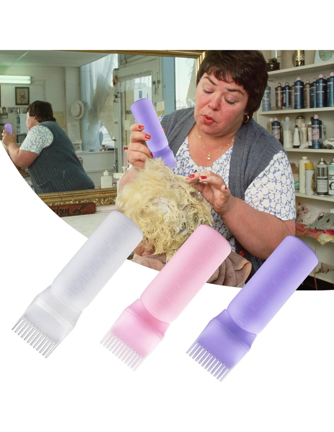 - Amplia Aplicación: La botella aplicadora se puede aplicar en cualquier ocasión, como hogares, escuelas de belleza, barberías, y puedes llevarlas cuando viajas.