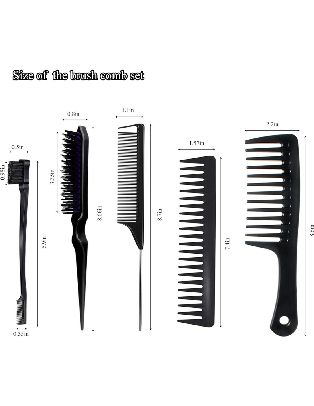 - [Más] : Duales cepillos mantienen los cabellos sueltos suaves, pequeños dientes del peine para pestañas y cejas; El cepillo de teasing ayuda fácilmente a crear cabello esponjoso, adecuado para hacer algunos peinados de rizos sueltos; El peine de cola de rata te ayuda a seccionar y separar el cabello rápidamente, también hemos preparado especialmente dos peines de dientes anchos (1 PCS Peine de dientes anchos sin mango y 1 PCS Peine de Dientes Anchos con Mango Recto) para ti que pueden desenredar tu cabello cómodamente.
