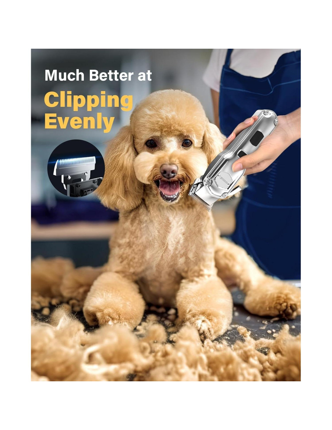 - Cortapelos para perros diseñado para pelo grueso y enmarañado y diferentes perros, diferentes grosores de pelo, pelo corto, pelo largo se puede usar. Las cortadoras de pelo para perros utilizan cuchillas de metal de acero inoxidable y tienen un motor de 6800 rpm para realmente recortar rápido. El kit de aseo para perros también contiene seis tamaños diferentes de peines guía, conveniente para que recortes diferentes longitudes de pelo de perro