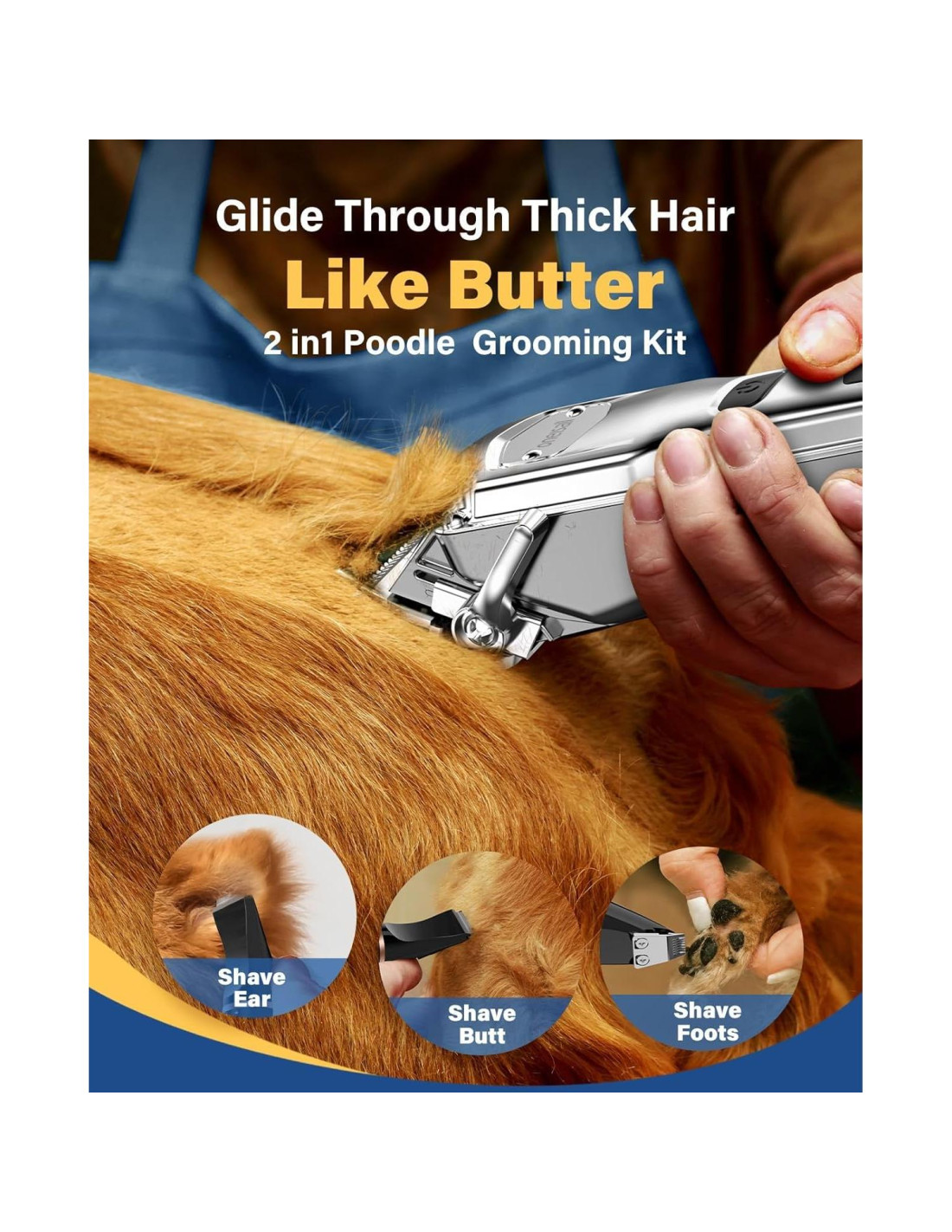 - Cortapelos de 2000mAh pueden durar 240 minutos, recortando más de tres perros. El kit de aseo oneisall también contiene una recortadora de perros que está especialmente diseñada para recortar áreas sensibles como patas, orejas y esquinas de la boca del perro. La recortadora de patas de perro contiene dos tamaños diferentes de cabezales de recorte que se pueden reemplazar según sea necesario para un recorte más seguro de la forma de tu perro