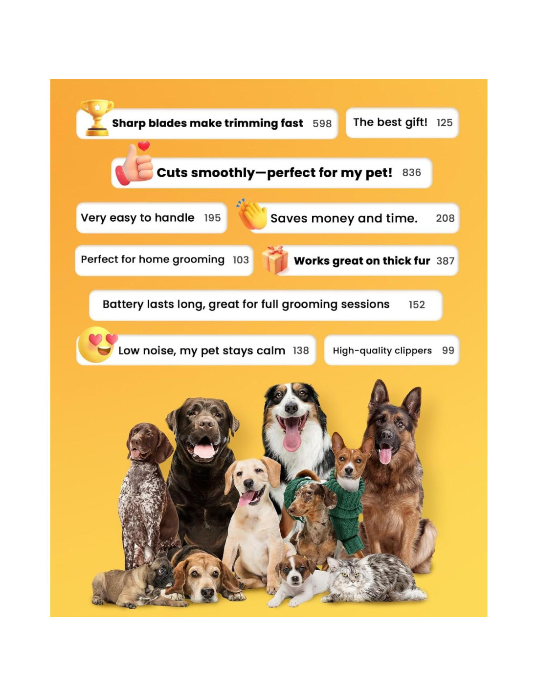 - Las cortadoras de perros para abrigos gruesos operan a un nivel de ruido de menos de 55db, lo que no asustará a tus mascotas y no las hará tener miedo. Protege a tus mascotas mientras también te facilita el recorte