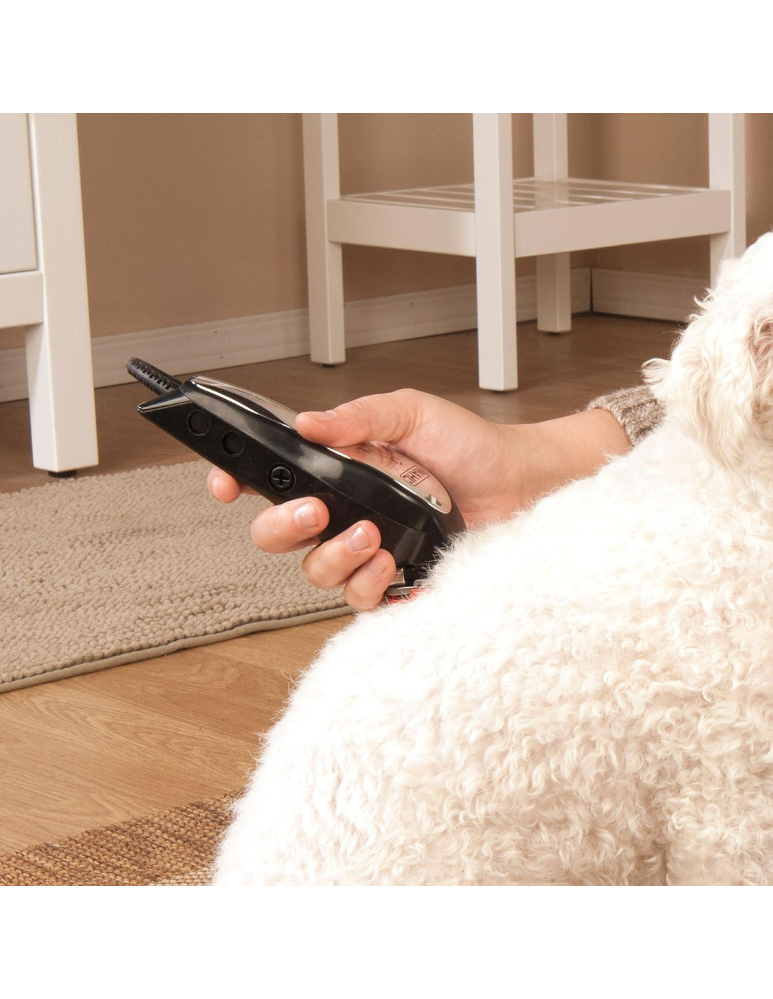 Con nuestras cortadoras de mascotas eléctricas, tu amigo peludo puede relajarse en el entorno y los olores familiares de casa mientras realizas un aseo de calidad de salón digno de una cinta de mejor en espectáculo. Completo con peines guía codificados por colores de fácil colocación, tijeras, peine y más en un práctico estuche de almacenamiento. Este kit de aseo para perros de lujo tiene todo lo que necesitas para mantener el pelaje de tu mascota saludable y brillante. Wahl pone más poder en tus manos con nuestro exclusivo sistema de transmisión de potencia. El kit de aseo para mascotas Wahl pro ofrece un 30% más de potencia de corte para eliminar enredos y esteras rebeldes con facilidad, solo corta en la dirección del crecimiento del pelo. Las cuchillas de acero de alto carbono autofilables están afiladas con precisión para un corte suave y sin enganches que es gentil y efectivo. Nuestras cuchillas son afiladas, no estampadas como algunas de la competencia. Si posees cortadoras de mascotas, te invitamos a probar la diferencia Wahl. La palanca de ajuste de desvanecimiento te permite personalizar las longitudes de corte para adaptarse a todas las razas, tamaños y tipos de pelaje de perros y gatos. Ya sea que estés aseando un caniche de taza o un labrador, tu mascota saldrá de tu sesión de aseo tranquila y bien arreglada. La calidad es nuestro sello distintivo en Wahl, insistimos en las piezas de la más alta calidad, fabricadas en EE. UU., para ofrecerte estas duraderas y confiables cortadoras de mascotas eléctricas. Con cuchillas específicamente fabricadas para animales y con excepcionales capacidades de alimentación de pelaje, somos la marca de cortadoras número 1 para recortes, retoques e incluso corte y aseo de pelajes dobles. Regala a tu mascota las alegrías de un aseo sin estrés en casa. Para preparar a tu perro para una cortadora eléctrica, enciende la cortadora y sostenla cerca del perro. Muéstrale a tu mascota que la cortadora o recortadora no les hará daño. Haz esto un par de veces antes del aseo y tu perro las aceptará. Agrega el kit de aseo para perros Wahl pro a tu carrito hoy. Cuatro peines guía codificados por colores para una identificación simple de la longitud del pelaje, deslízate a través de los pelajes sin esfuerzo. Incluye un conveniente estuche de almacenamiento. Para obtener los mejores resultados, usa aceite para cortadoras Wahl en las cuchillas solo cuando sea necesario, o aproximadamente una vez al mes. Fabricado en EE. UU. con piezas nacionales e importadas, los kits de aseo para mascotas Wahl son consistentemente la marca de elección para aquellos que buscan máquinas eléctricas de aseo para mascotas de alta calidad y duraderas. Garantía limitada de 5 años para uso doméstico solamente, no válida si se usa como cortadoras de cabello profesionales. No para uso internacional, fabricado solo para tomacorrientes eléctricos de EE. UU. Para lograr los mejores resultados, asegúrate de lavar, secar y cepillar a tu mascota antes de cortar. Esto eliminará cualquier residuo y pelo suelto adicional en el pelaje de tu mascota para ayudar a que el proceso de corte sea más suave. También asegúrate de engrasar las cuchillas después de cada pocos usos para obtener los mejores resultados.