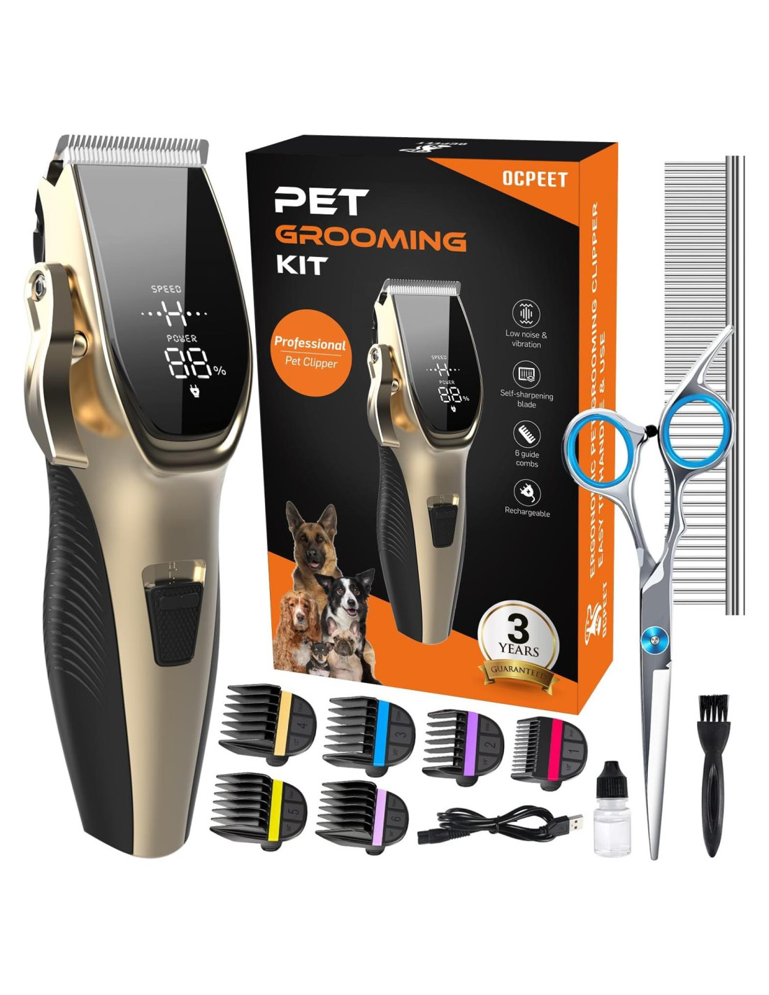 - [Fácil de Usar e Ideal para Nuevos Dueños de Mascotas] Las cortadoras de aseo para perros OCPEET están diseñadas con comodidad, facilidad de uso y conveniencia en mente. Con una operación de un solo toque, un mango ergonómico antideslizante y una función antiatasco de pelo, son increíblemente fáciles de sostener y maniobrar, reduciendo la fatiga de manos y muñecas para un confort de aseo durante todo el día. La cortadora de grado profesional también cuenta con una pantalla LCD HD, permitiéndote controlar sin esfuerzo el proceso de aseo. Perfecto para dueños de mascotas novatos, el kit de aseo para perros OCPEET es tu solución ideal para una experiencia de aseo impecable.