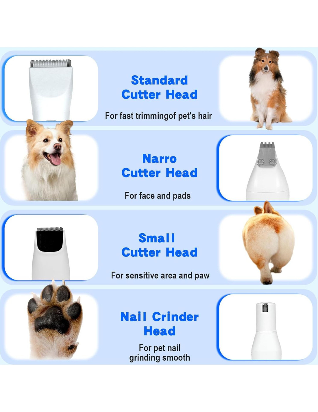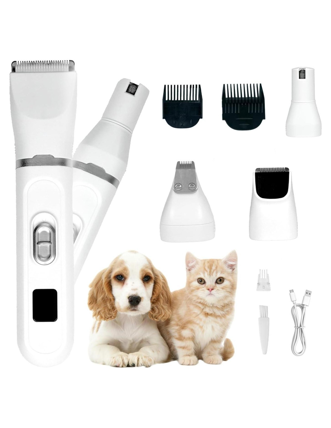 - 4-en-1 Versatilidad El kit de cuidado de mascotas incluye todo lo que necesitas para el corte de cuerpo completo y el cuidado de uñas. Viene con una cuchilla estándar, una cuchilla estrecha, una cuchilla de detalle para áreas intrincadas y una amoladora de uñas, perfecta para patas, cara, orejas, barriga y más. Este cortapelos para mascotas todo en uno es ideal para el cuidado de cuerpo completo en gatos y perros de tamaño pequeño a mediano.