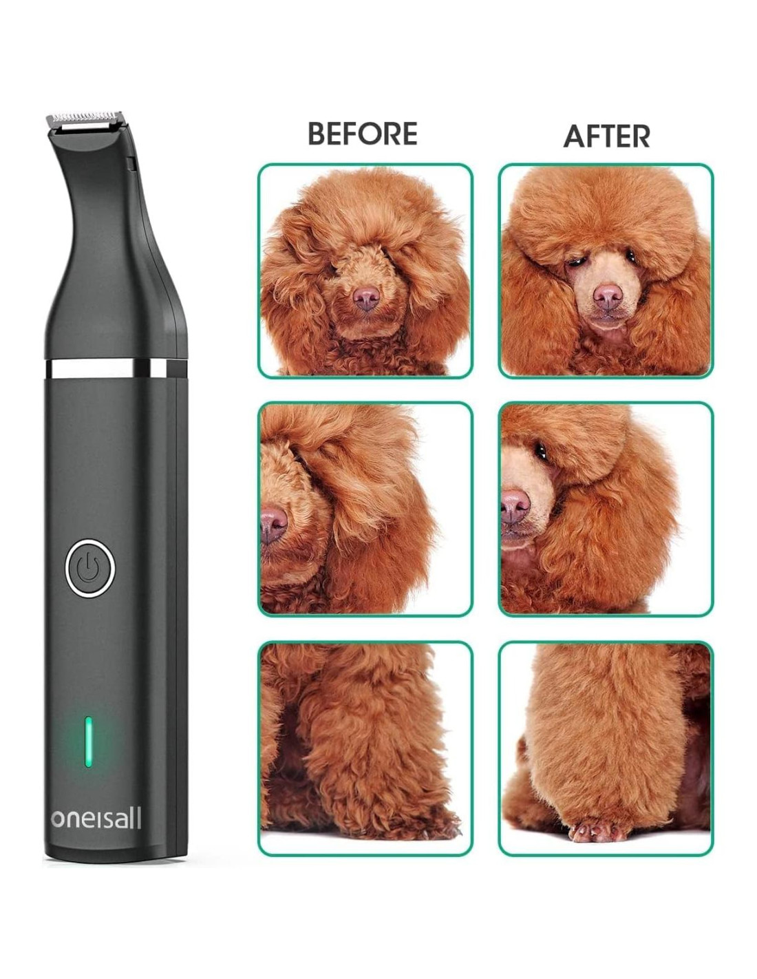 - Lo Que Obtienes: conjunto de cortadora de perros oneisall (con una cuchilla pequeña y una cuchilla mediana), un cepillo de limpieza, un cable de carga USB