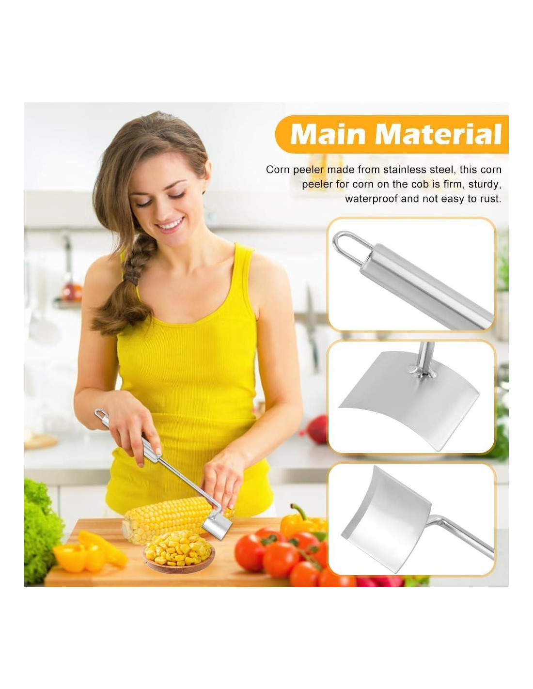 - Material Principal: Hecho de acero inoxidable, este pelador de maíz para mazorcas es firme, resistente, impermeable y no se oxida fácilmente. Es fácil de lavar y mantener, asegurando un uso duradero.