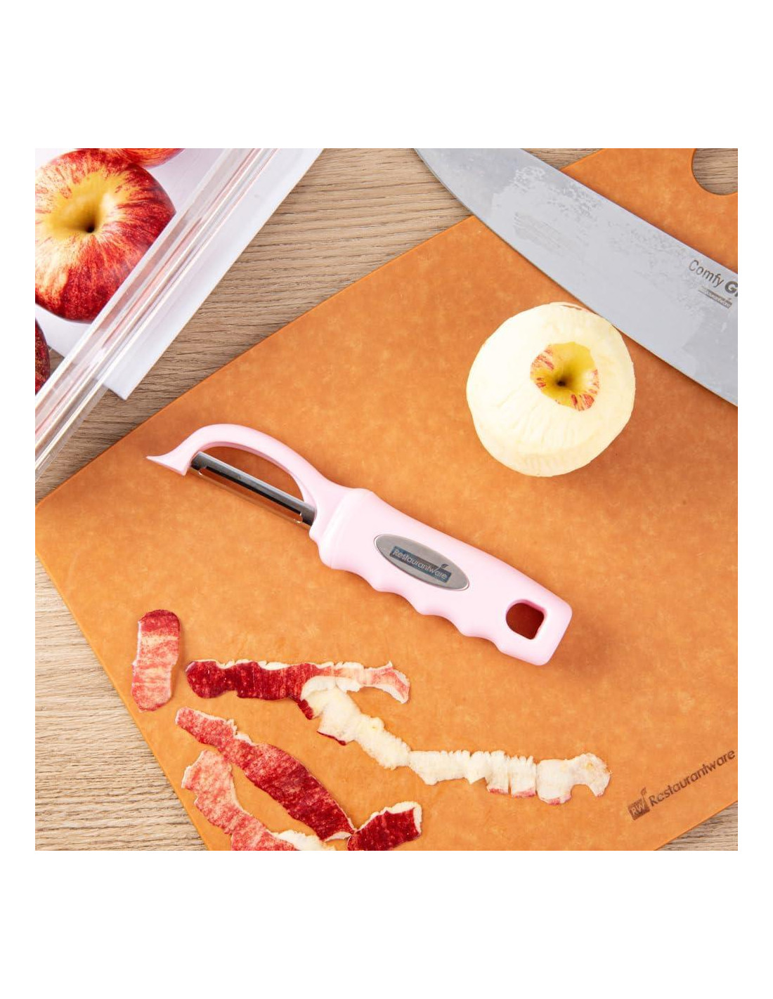 - 1 PELORE DE VERDURAS ROSA: Con una medida de 19 cm de longitud, este pelador de verduras es ideal para ahorrar tiempo en la preparación de comidas en tu establecimiento. Recibirás 1 pelador de verduras de acero inoxidable por pedido.