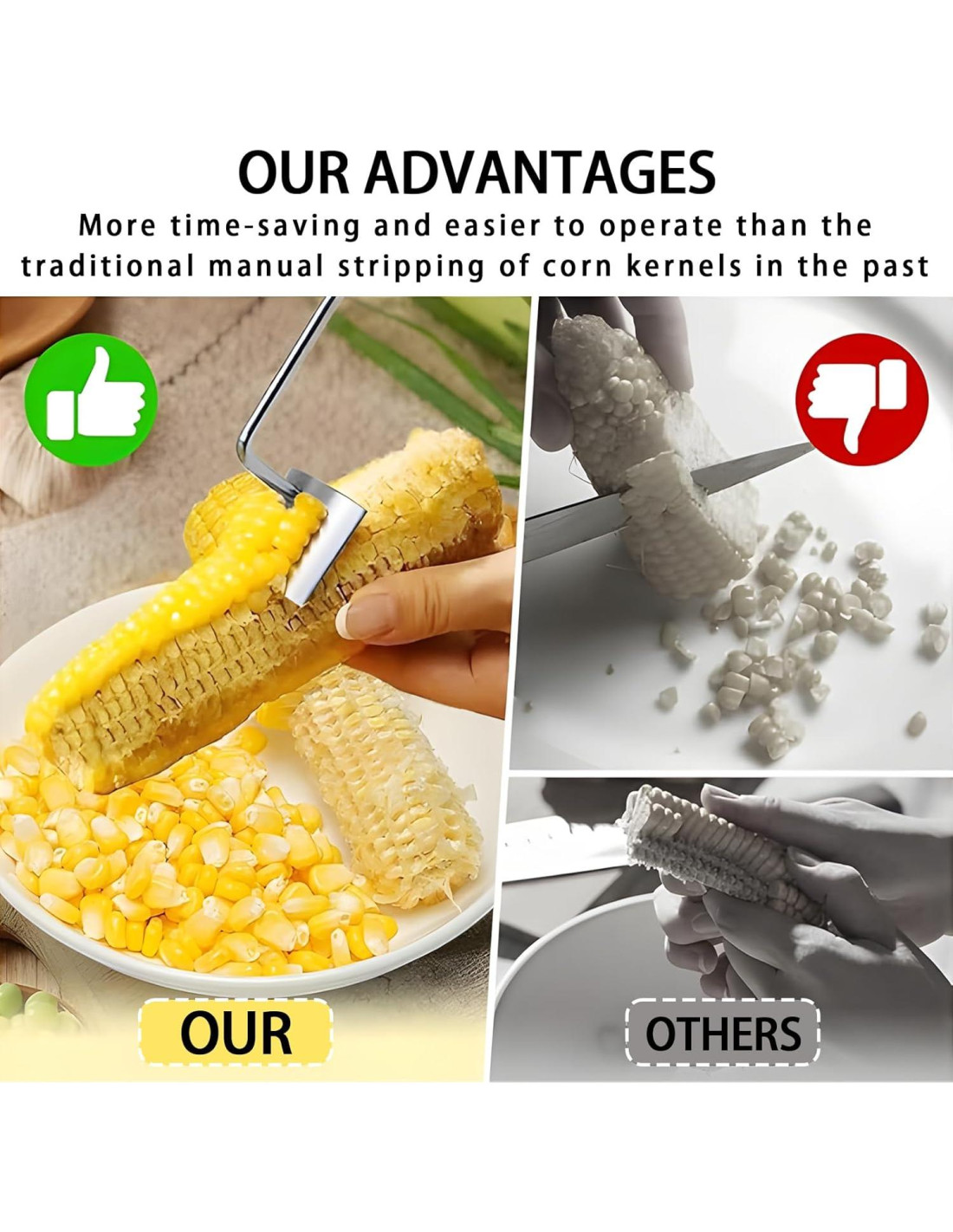 - Alta Calidad Este desgranador de maíz está hecho de material de acero inoxidable de alta calidad, que es fuerte y resistente al desgaste, no es fácil de doblar, romper o debilitar. El removedor de mazorcas de maíz no es fácil de oxidar y tiene una larga vida útil.