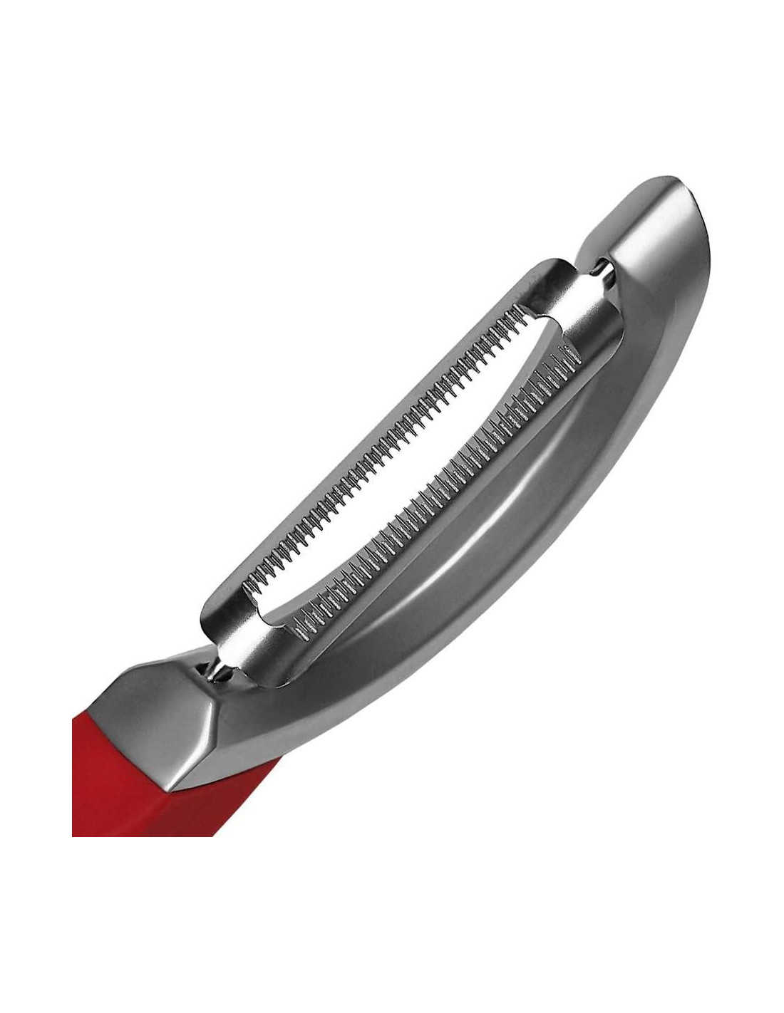 - En la punta del pelador profesional hay una cuchara incorporada que actúa como removedor de ojos de papa y tubérculos. La cuchara también se puede usar para quitar magulladuras en frutas y verduras.
