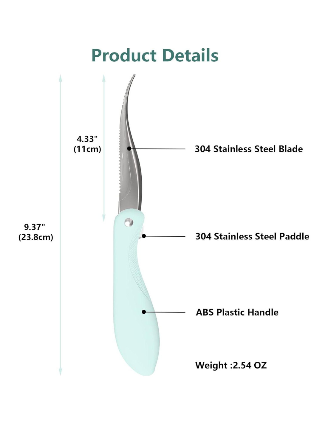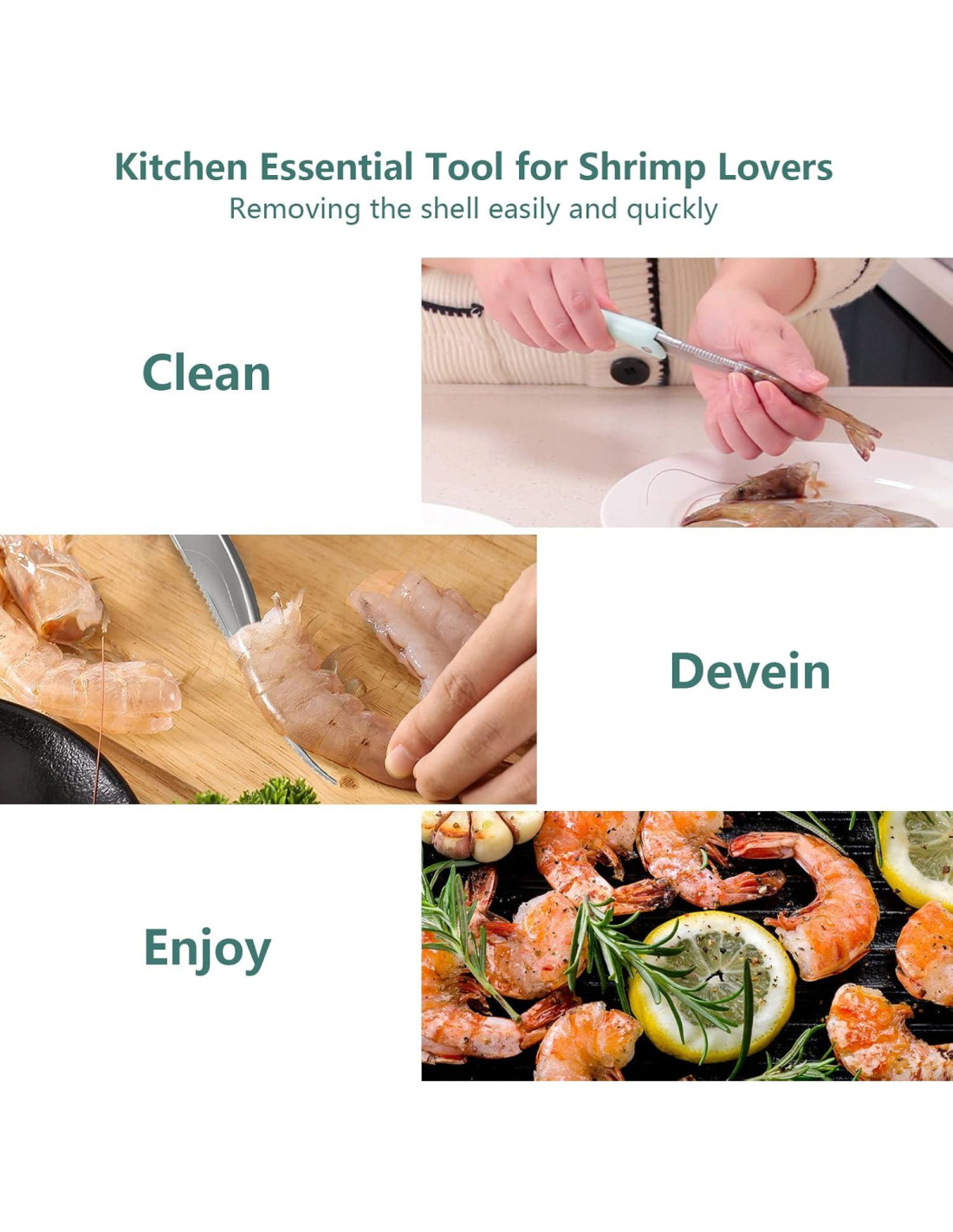 - DISEÑO DE BANDA SERRADA: El cuchillo limpiador de camarones con un diseño serrado, fácil de usar, y hace que eliminar las venas de los camarones sea fácil y rápido. Le ahorra mucho tiempo de preparación.