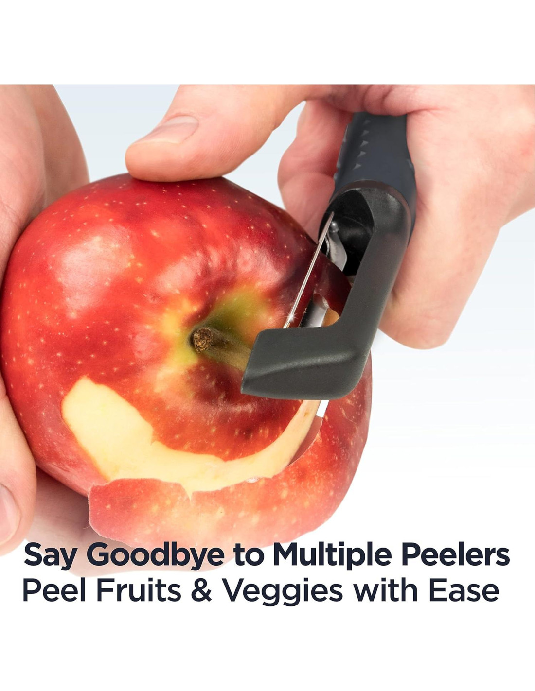 - PELA COMO MANTEQUILLA - Nuestros peladores de verduras para cocina pelan como mantequilla derretida sin desgastar tus frutas y verduras. Pela la cantidad justa de piel y ahorra productos preciosos. No se obstruye con las cáscaras y no se corroe con el uso constante.