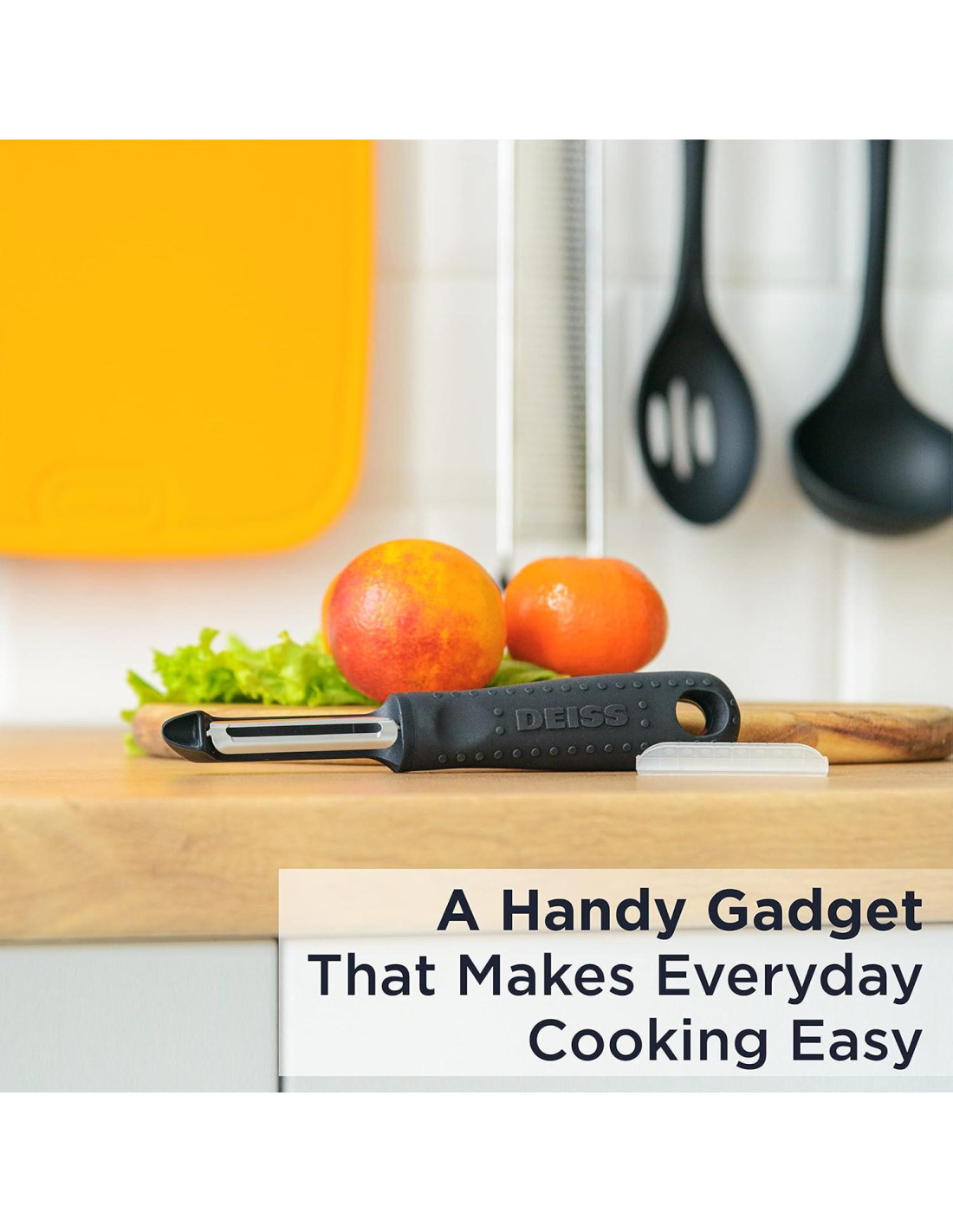 - GARANTÍA DE POR VIDA - Deiss Kitchenware proporciona una garantía de por vida en su pelador giratorio de acero inoxidable multipropósito - pelador de manzana, pelador de naranja, pelador de zanahoria, pelador de pepino, pelador de patatas, pelador de kiwi, pelador de mango. Además, recibirás el BONO - exclusivo ebook "Consejos de Cocina Saludable" - ¡absolutamente GRATIS!